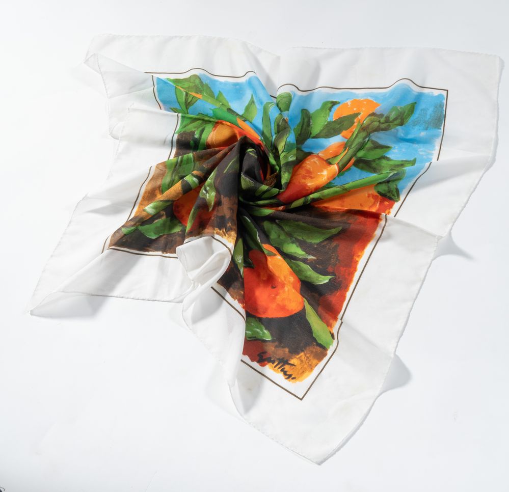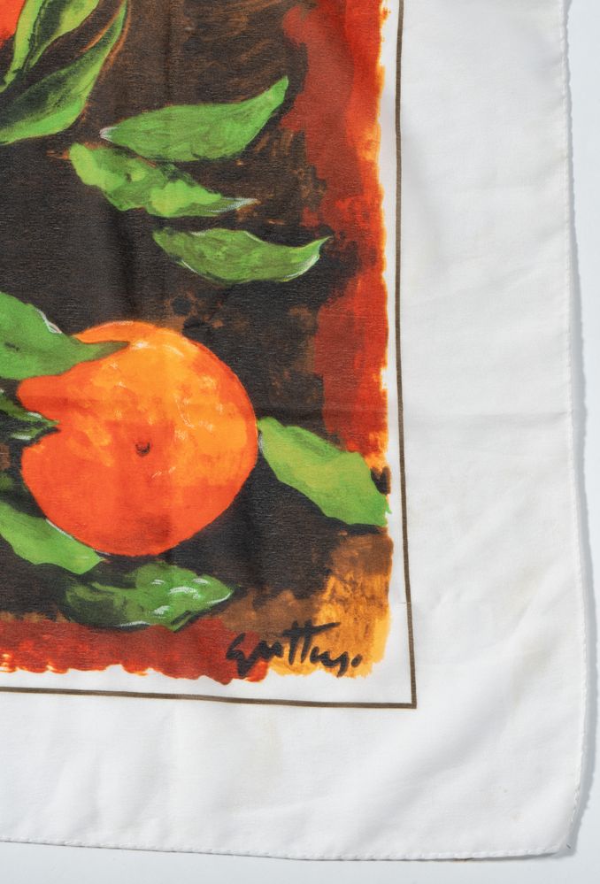 RENATO GUTTUSO Foulard a fantasia con disegno raffigurante arance. Cm 89x89....