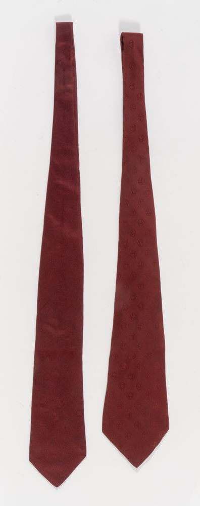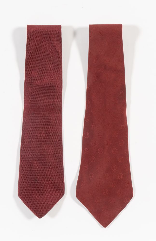 VALENTINO Lotto composto da due cravatte in seta a fantasia sui toni del bordeaux. Lunghezza cm 151-155. Composizione: 100% seta. Recano logo ed etichette V, Valentino Cravatte Made in Italy, Valentino.