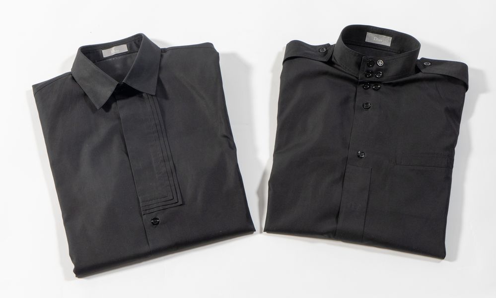 DIOR Lotto composto da due camicie in cotone nero. Ciascuna riporta taglia 38. Composizione: 100% cotone. Recano etichette Dior. (Lievi difetti)