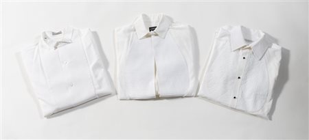 DIOR, GIORGIO ARMANI, YVES SAINT LAURENT Lotto composto da tre camicie in cotone sui toni del bianco. Ciscuna riporta taglia 38/15. Composizione: 100% cotone. Recano etichette Dior, Giorgio Armani Made in Italy e Yves Saint Laurent Rive Gauche Made in Italy. (Lievi difetti)