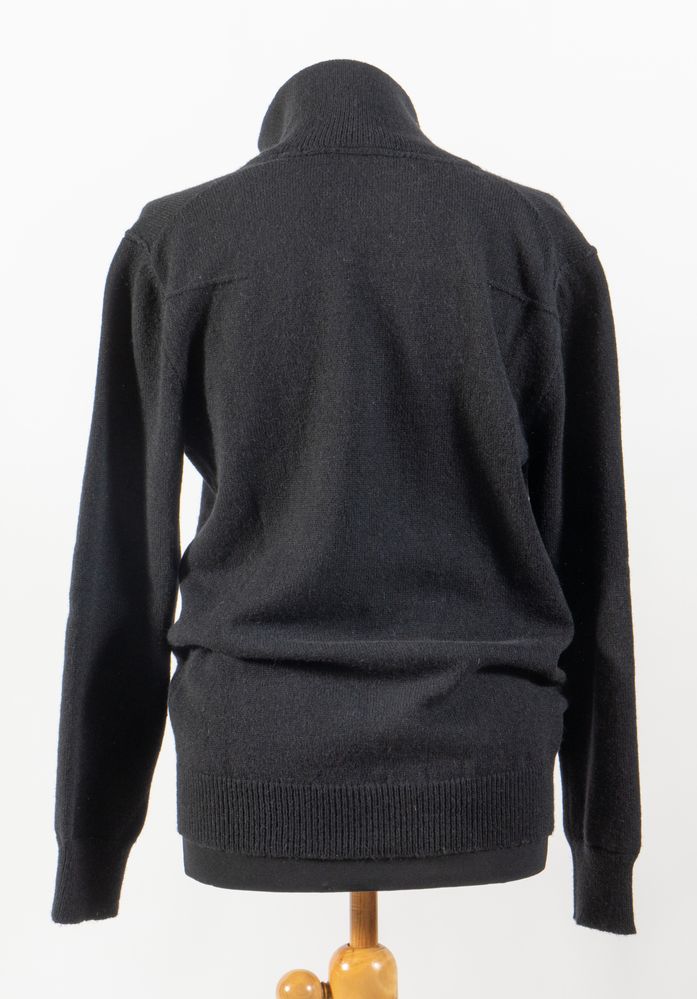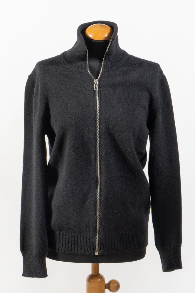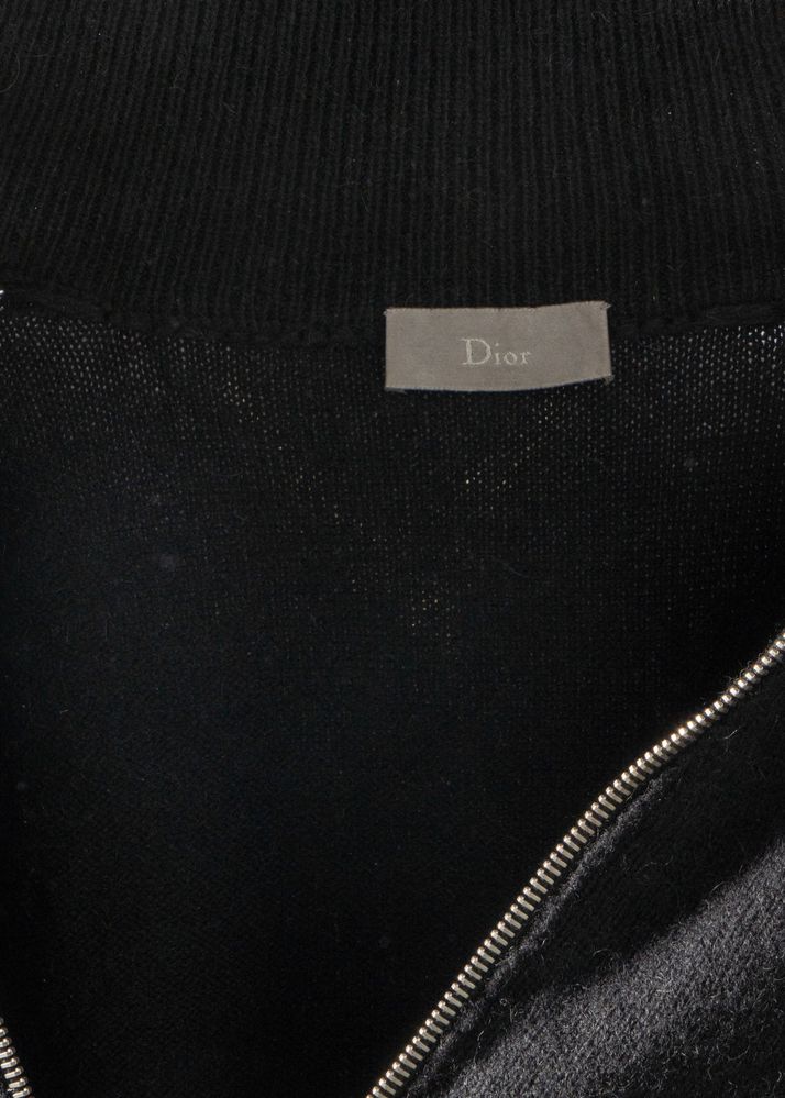 DIOR Cardigan in lana di cammello nero chiuso da cerniera in metallo argentato. Riporta taglia S. Composizione: 100% cammello. Reca marchio ed etichetta Dior Homme e Dior.