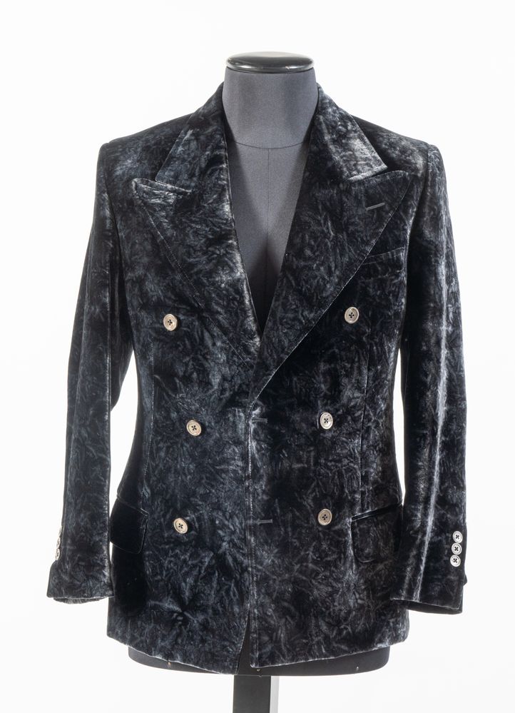YVES SAINT LAURENT Giacca a doppiopetto in velluto cangiante nero. Riporta...