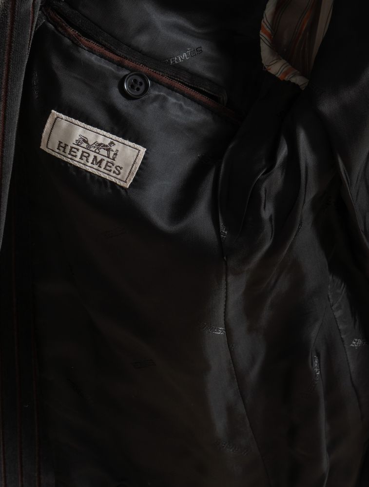 HERMÈS Giacca in velluto gessato sui toni del grigio e del marrone con...