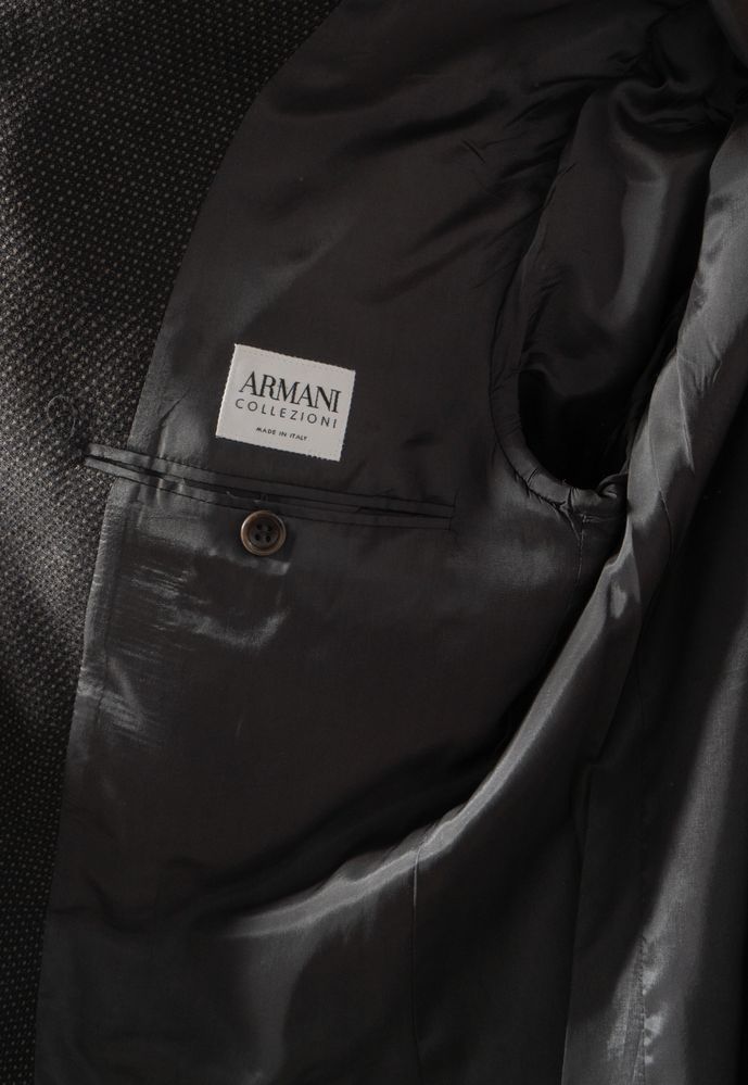 ARMANI Collezioni Giacca maschile in lana sui toni del marrone. Riporta taglia 50. Composizione: 100% lana. Interno rifinito con fodera marrone. Riporta etichetta Armani Collezioni Made in Italy.