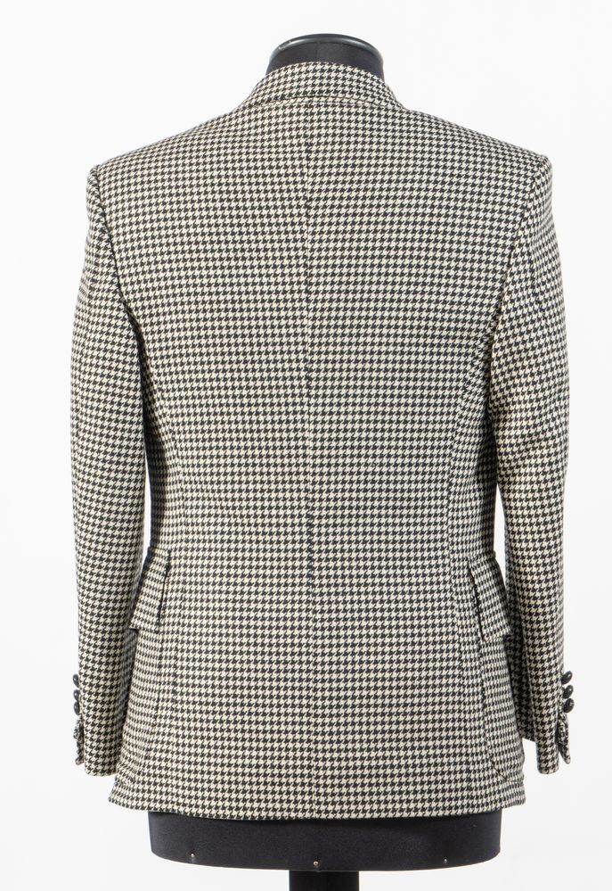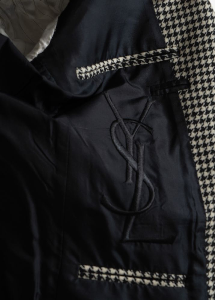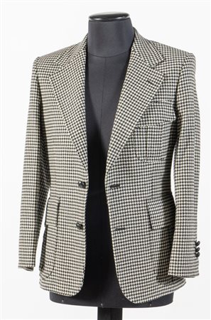 YVES SAINT LAURENT Rive Gauche Giacca in lana a fantasia pied de poule sui toni del bianco e del nero. Riporta taglia 48. Composizione esterno: 100% lana. Composizione fodera interna: 100% cupro. Reca marchio YSL ed etichetta Yves Saint Laurent Rive Gauche.