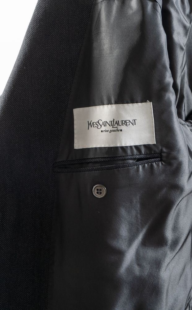 YVES SAINT LAURENT Rive Gauche Cappotto maschile in lana grigio scuro con...