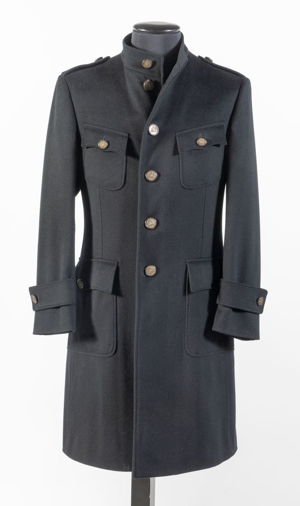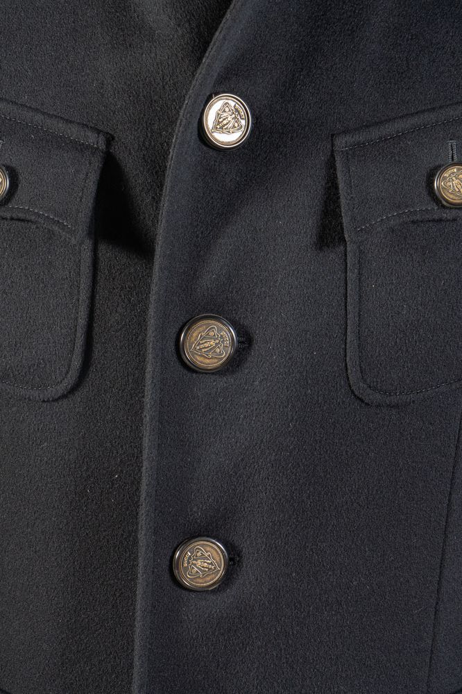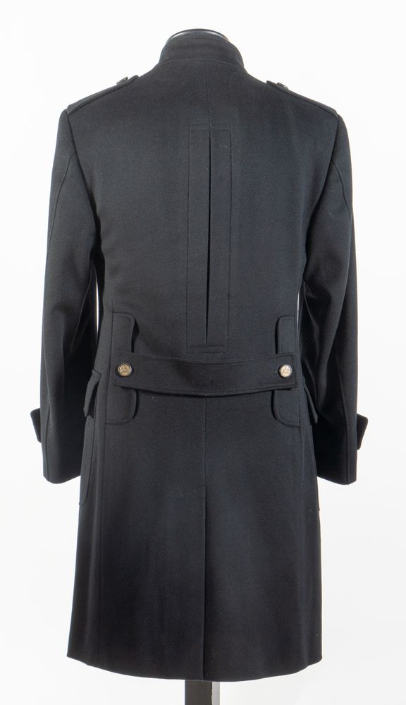 GUCCI Cappotto lungo maschile in lana nera con bottoni logati in metallo....