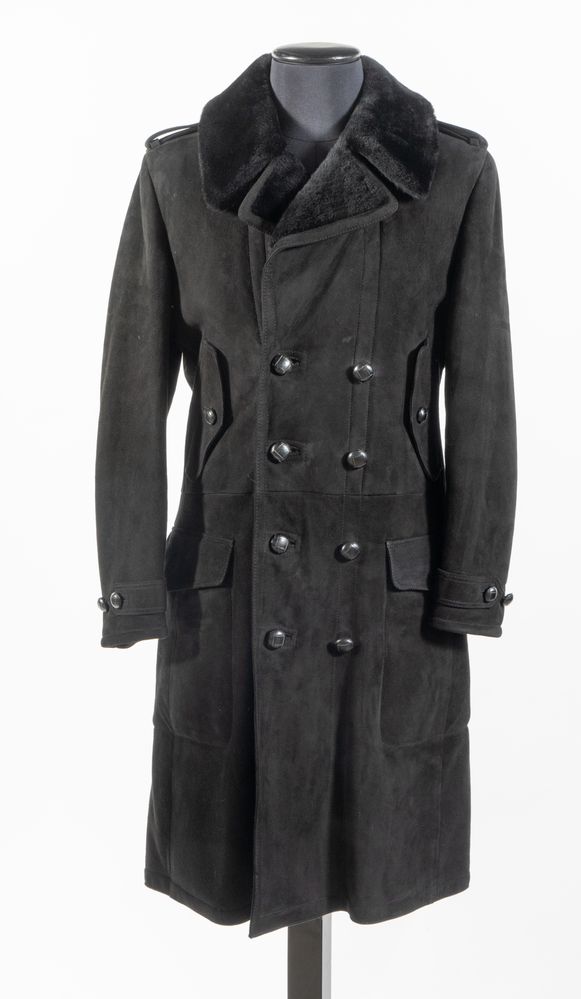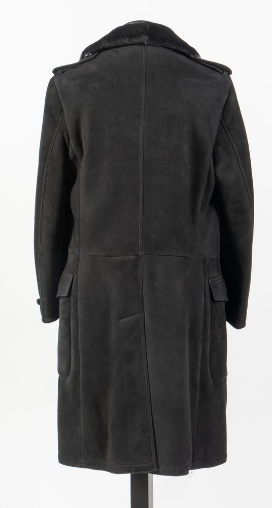 YVES SAINT LAURENT Rive Gauche Montone lungo in vera pelle nera con interno in peliccia e bottoni rivestiti in pelle nera. Riporta taglia 48. Reca etichette Yves Saint Laurent Rive Gauche e vera pelle Made in Italy. (Difetti)