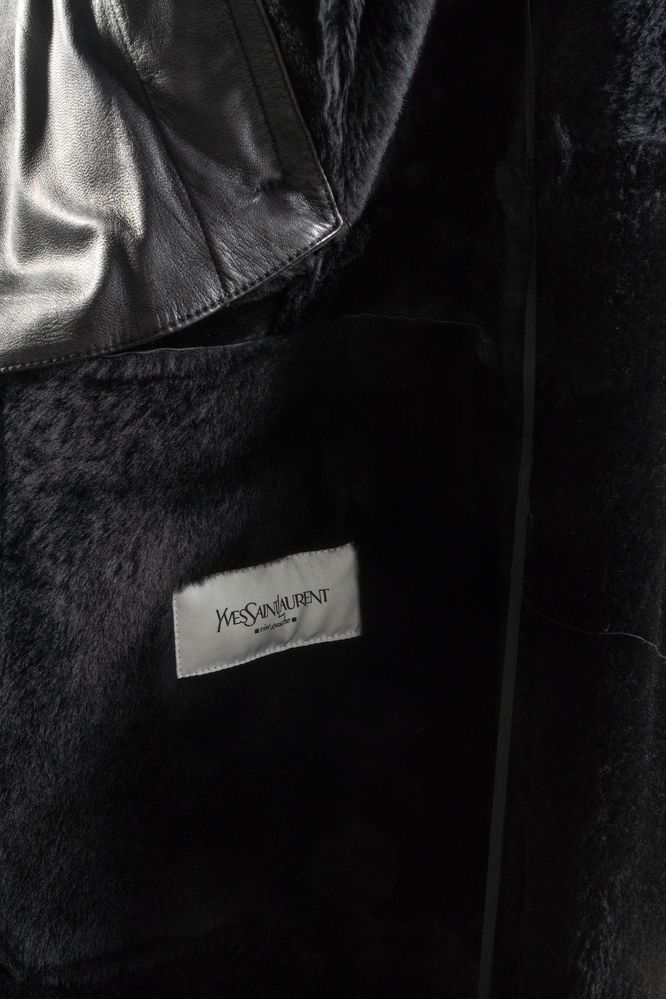 YVES SAINT LAURENT Rive Gauche Montone lungo in vera pelle nera con interno...