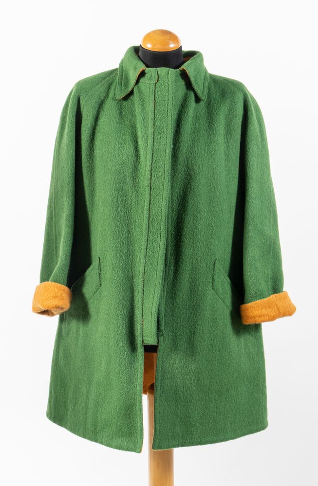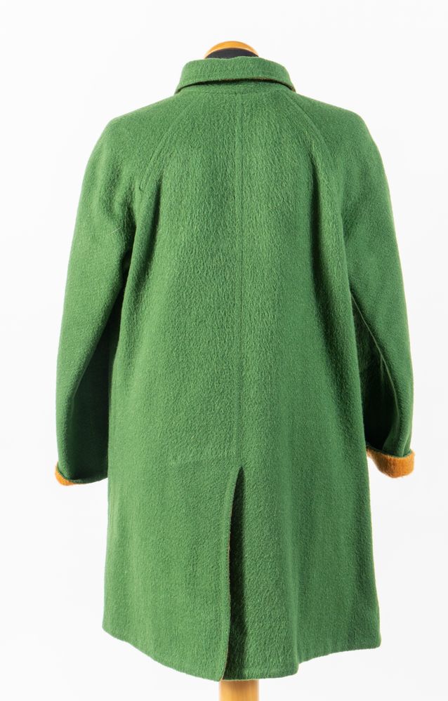 HERMÈS Sport Cappotto in lana verde con interno arancione. Riporta taglia FR 40. Reca etichetta Hermès Sport. (Lievi difetti)