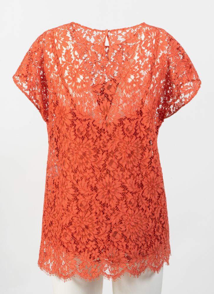 DOLCE & GABBANA Blusa in pizzo sui toni del rosso corallo. Accompagnata da...