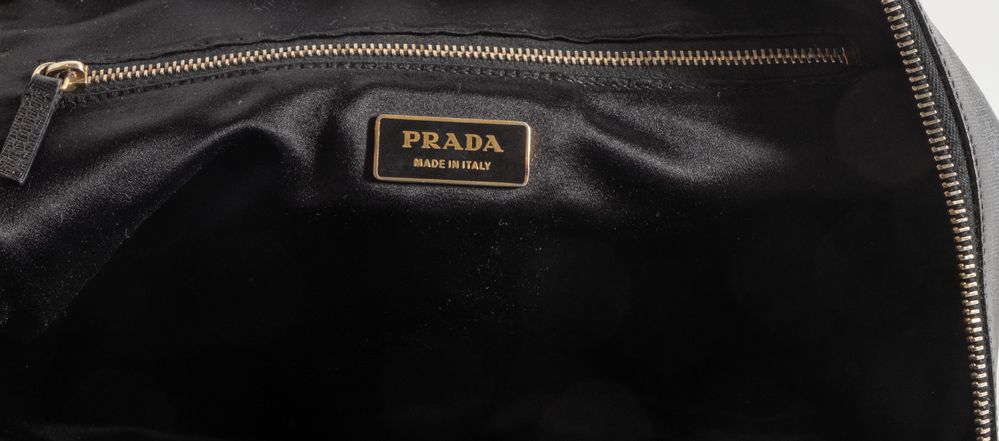 PRADA Borsa modello Promenade in pelle saffiano nera. Anni 2000. Dettagli in...