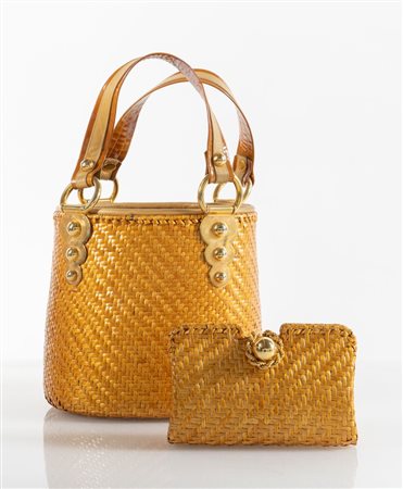 RODO Lotto composto da borsa a secchiello e pochette in vimini sui toni del...