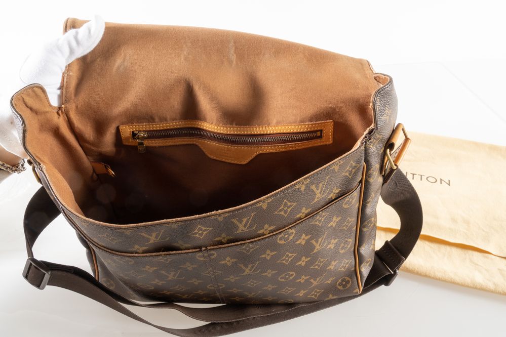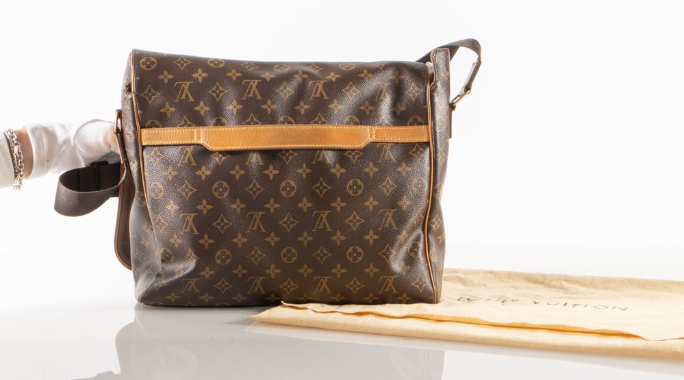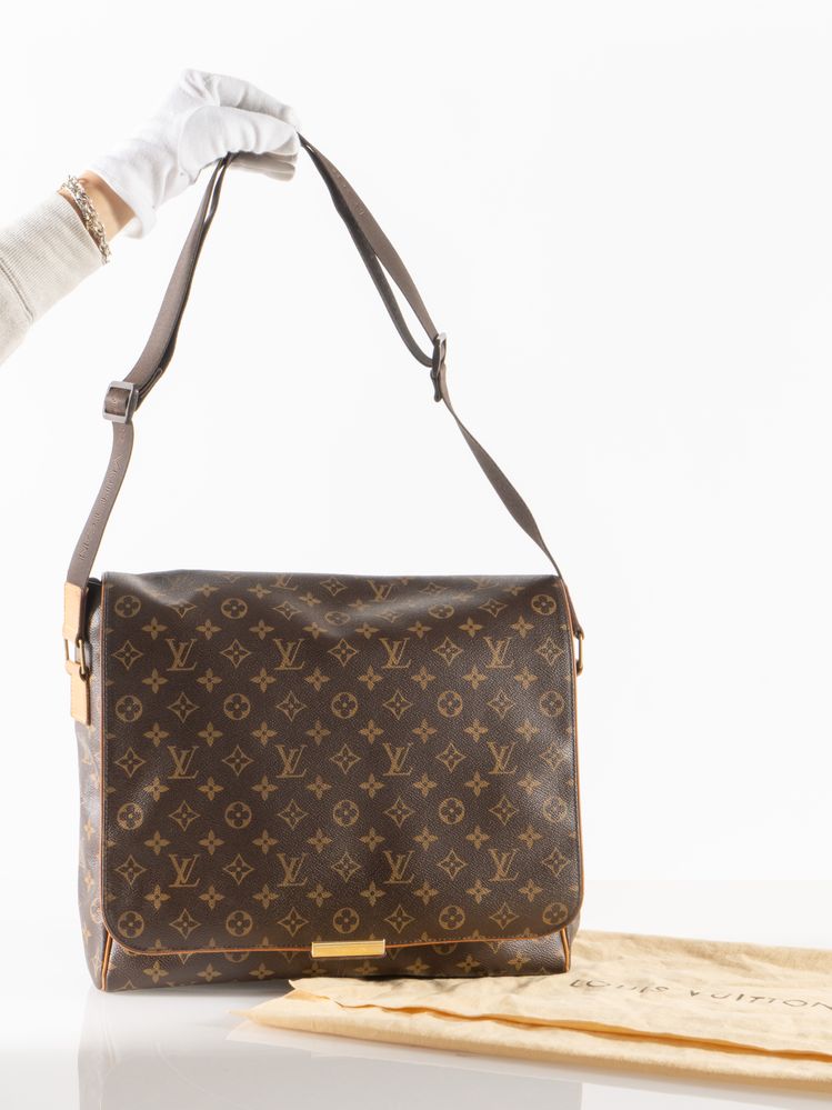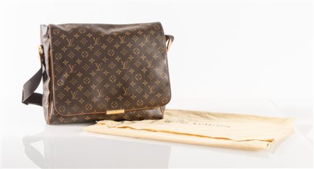 LOUIS VUITTON Tracolla modello Abbesses Messenger in tela monogram con rifiniture in cuoio e dettagli in metallo dorato. Cm 33x39. Lunghezza totale con tracolla 95. Reca un vano porta oggetti sul lato esterno superiore e due tasche sotto la patta. Interno rifiinito in tela con tre tasche di cui una chiusa da cerniera. reca marchi LV, Louis Vuitton Louis Vuitton Paris Made in France e codice di riferimento prodotto. Riporta iniziali G.Z. su una delle parti in cuoio della tracolla. Corredato di dustbag originale. (Difetti)