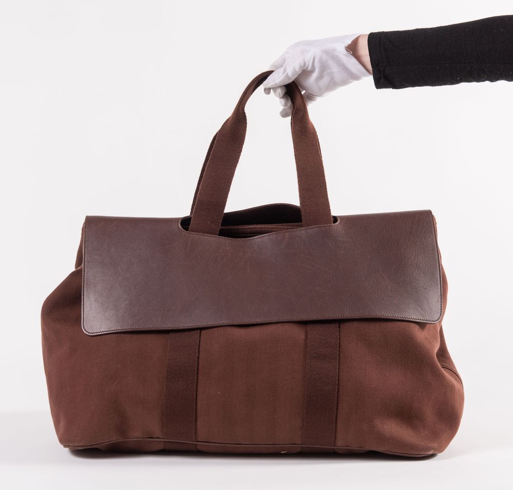 HERMÈS Grande borsa da spalla modello Valparaiso marrone in tela con...