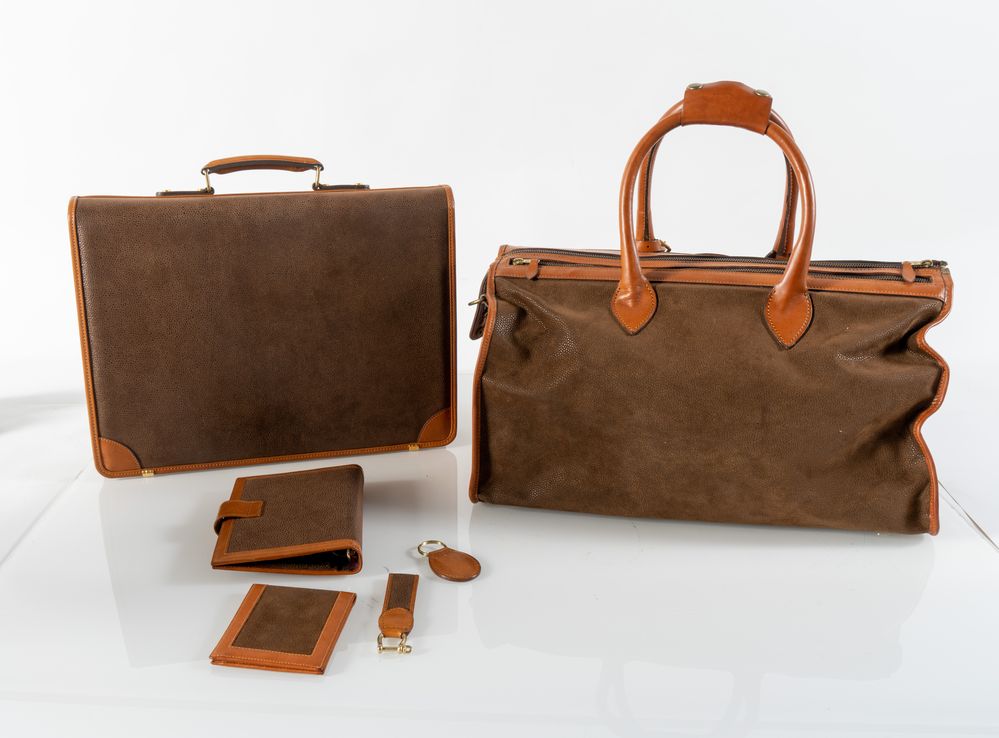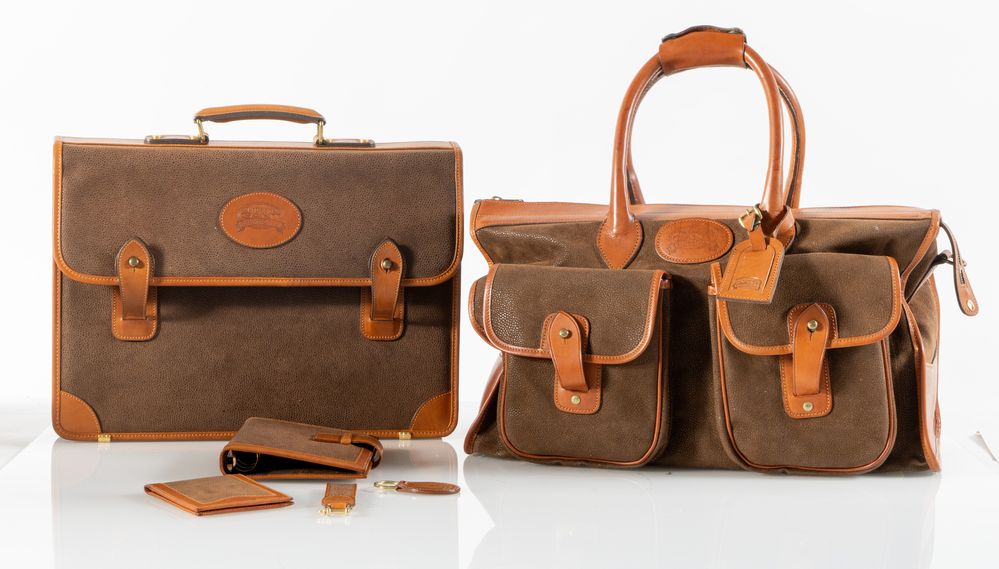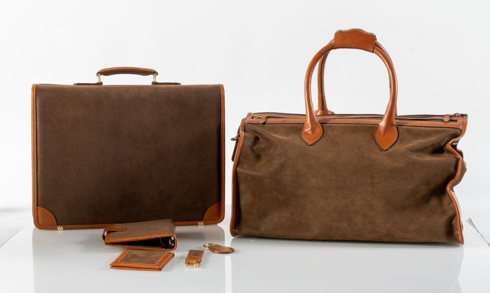 GANT Lotto composto da borsa da viaggio, ventiquattrore, agenda e portachiavi. Agenda: 20,5x15x4. 24h: cm 32x44x11. Altezza con maniglia: cm 38. Borsone: 30x50x27. Altezza con manici: cm 45. Recano marchi GANT, The Original Leather Goods.
