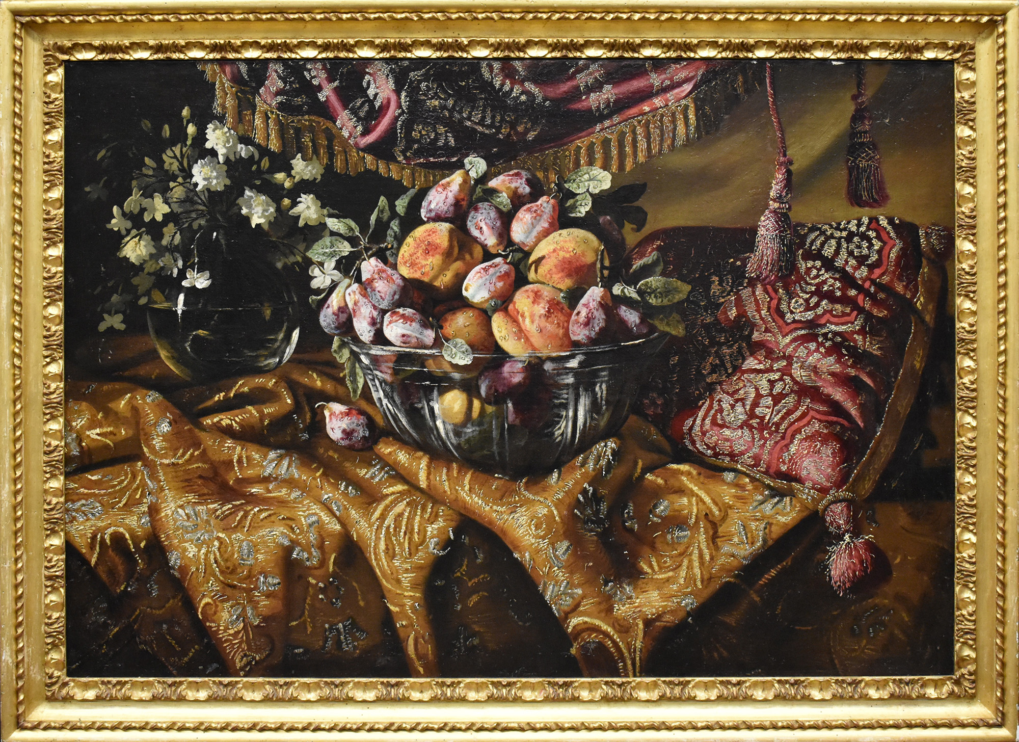 olio su tela raff.natura morta con tessuto sec.XVII