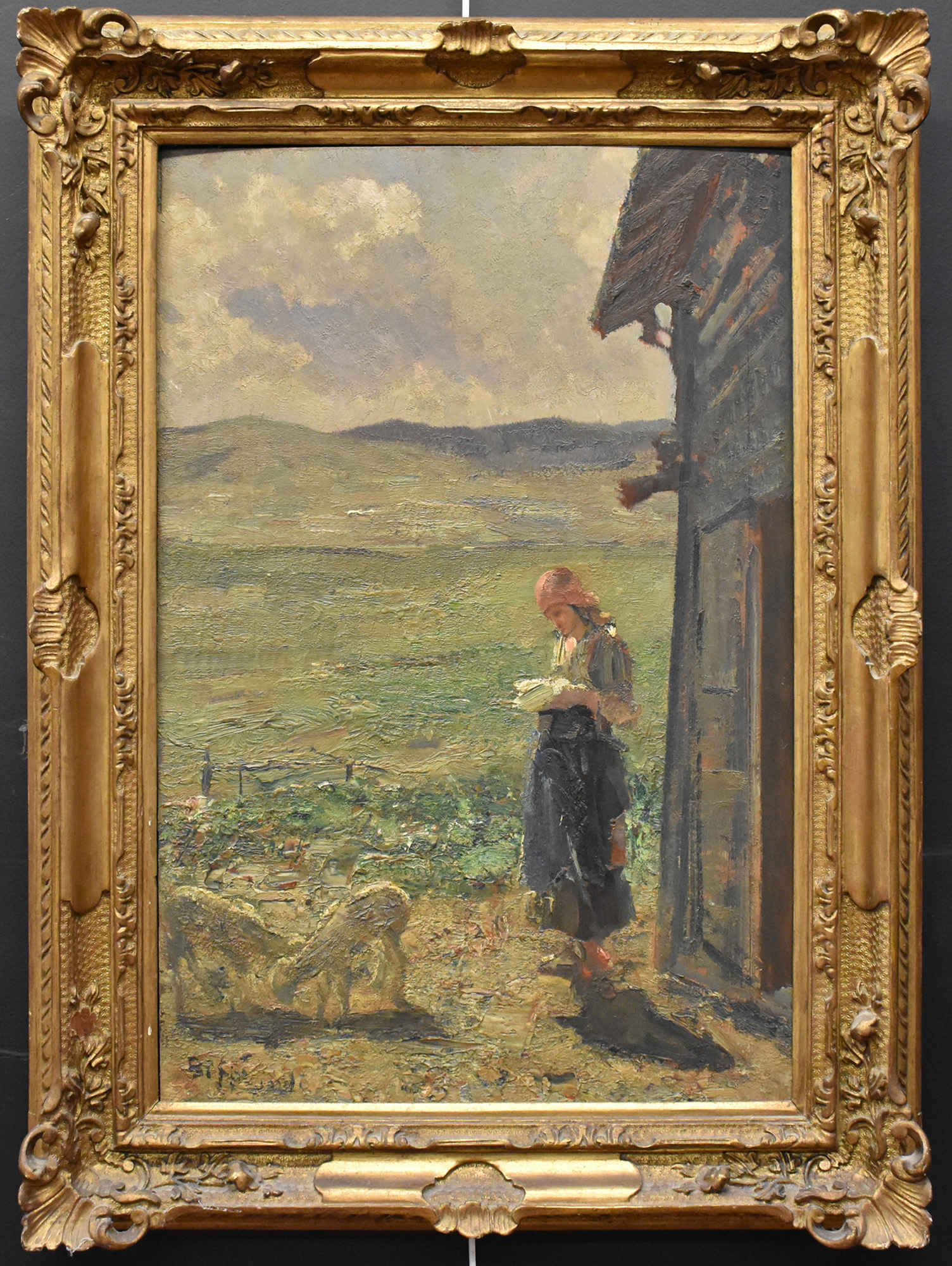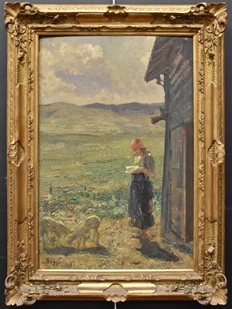 Beppe Ciardi 1875/1932 olio su tavoletta 'alti pascoli' firmato in basso a sinistra sul retro etichetta Galleria d'arte Martina Torino firma artista e data 1925