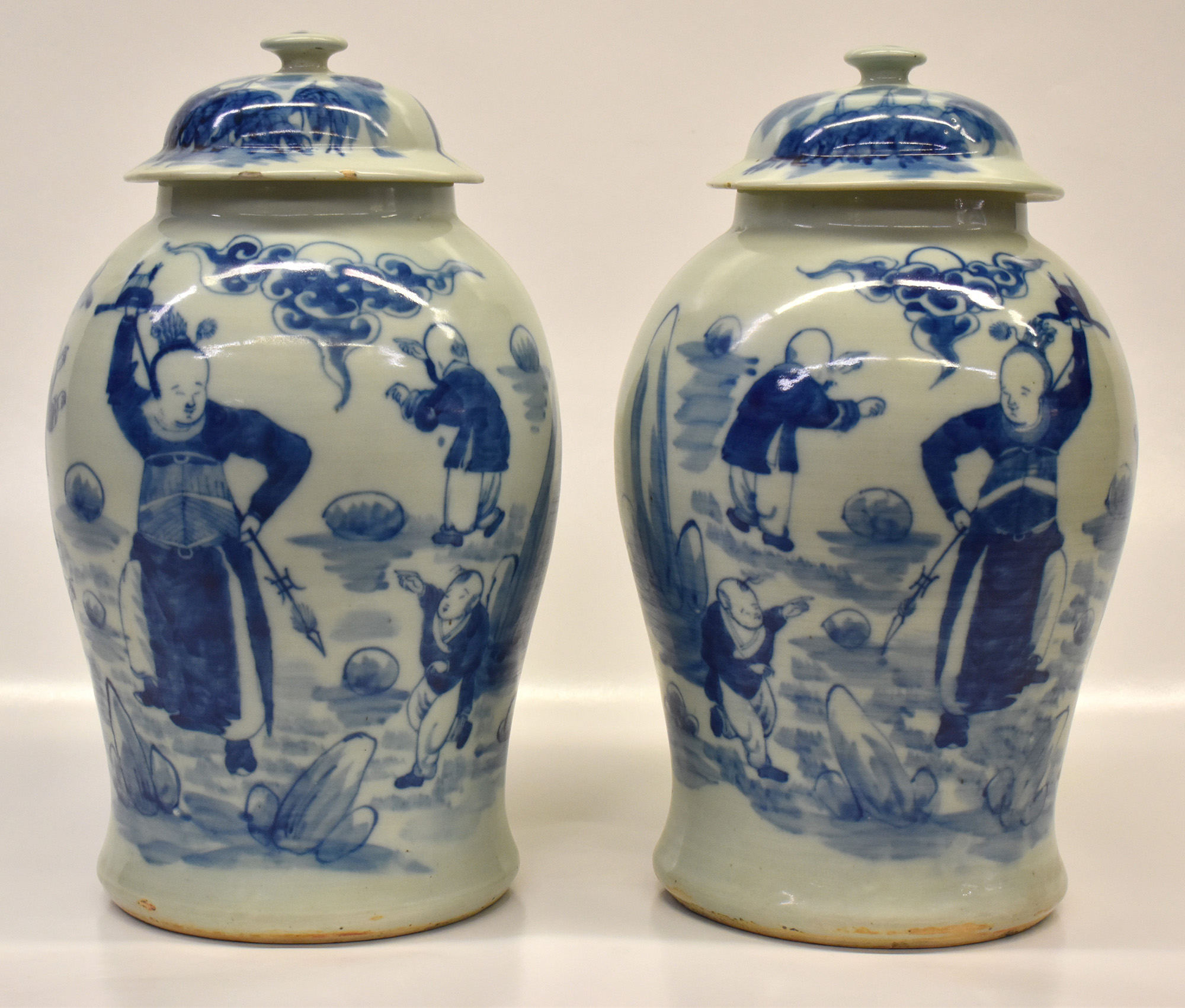 Cina coppia di vasi in porcellana bianca e blu con coperchio