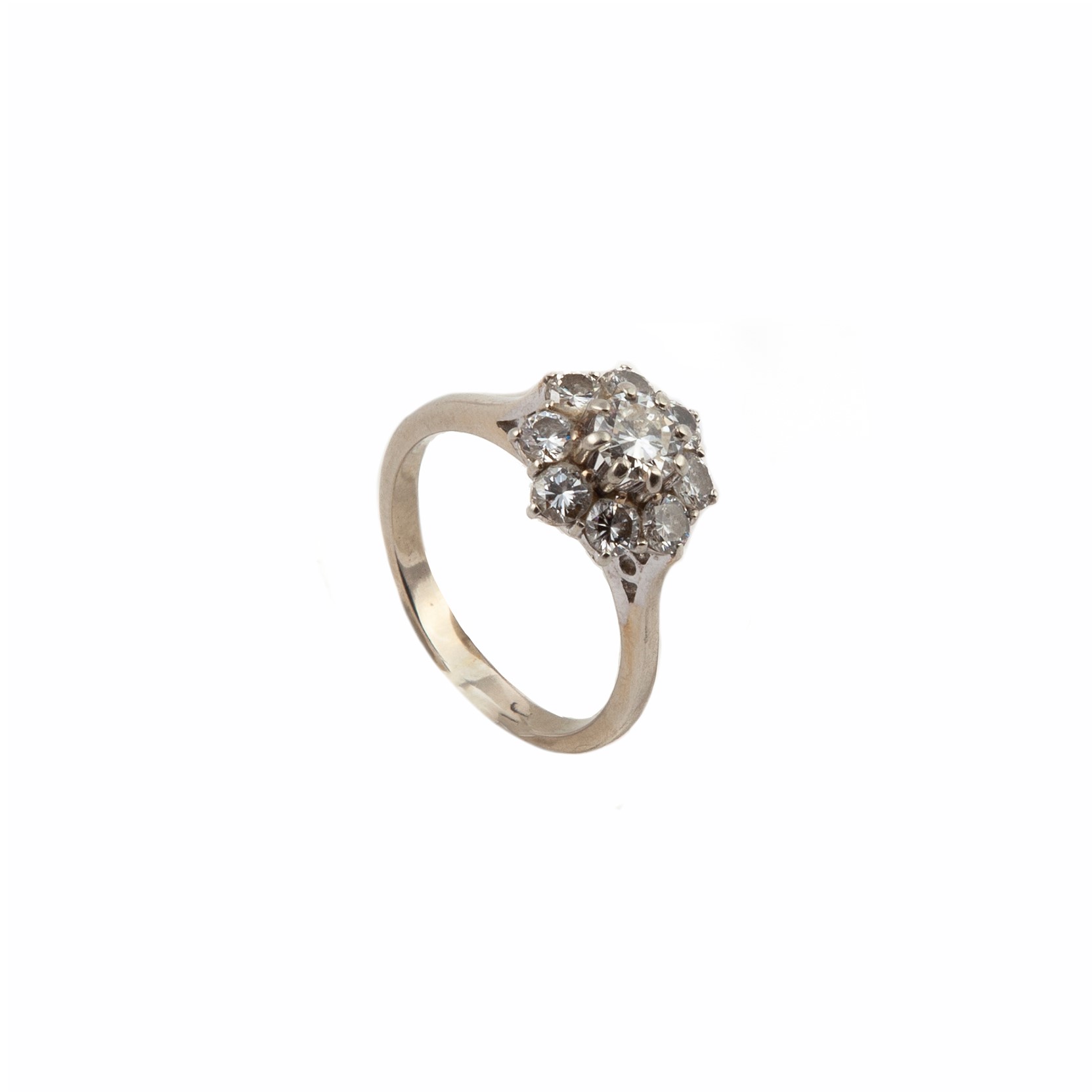 Oro bianco 750/000. Diamanti naturali taglio rotondo brillante ct. 0,60 ca.; prob. H/I-VVS/VS. Peso complessivo gr. 3.