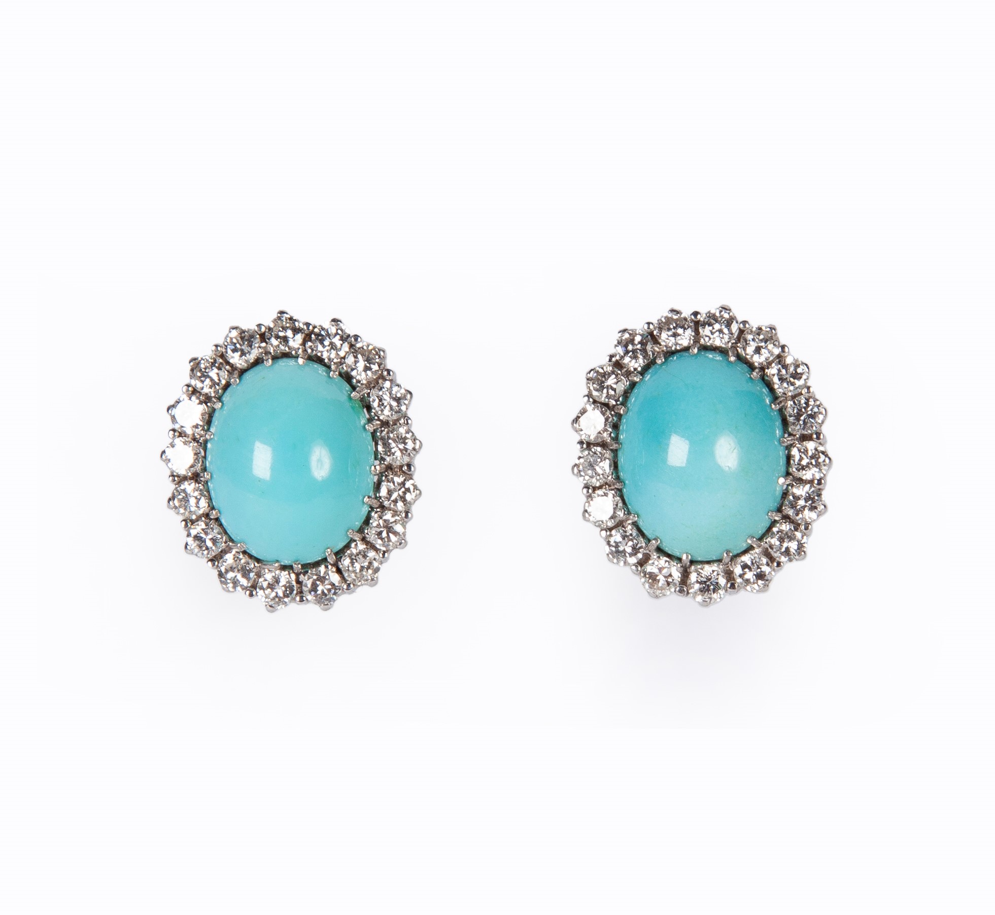 Lotto 41 | Coppia di orecchini al lobo con spola di turchesi e giro di brillanti