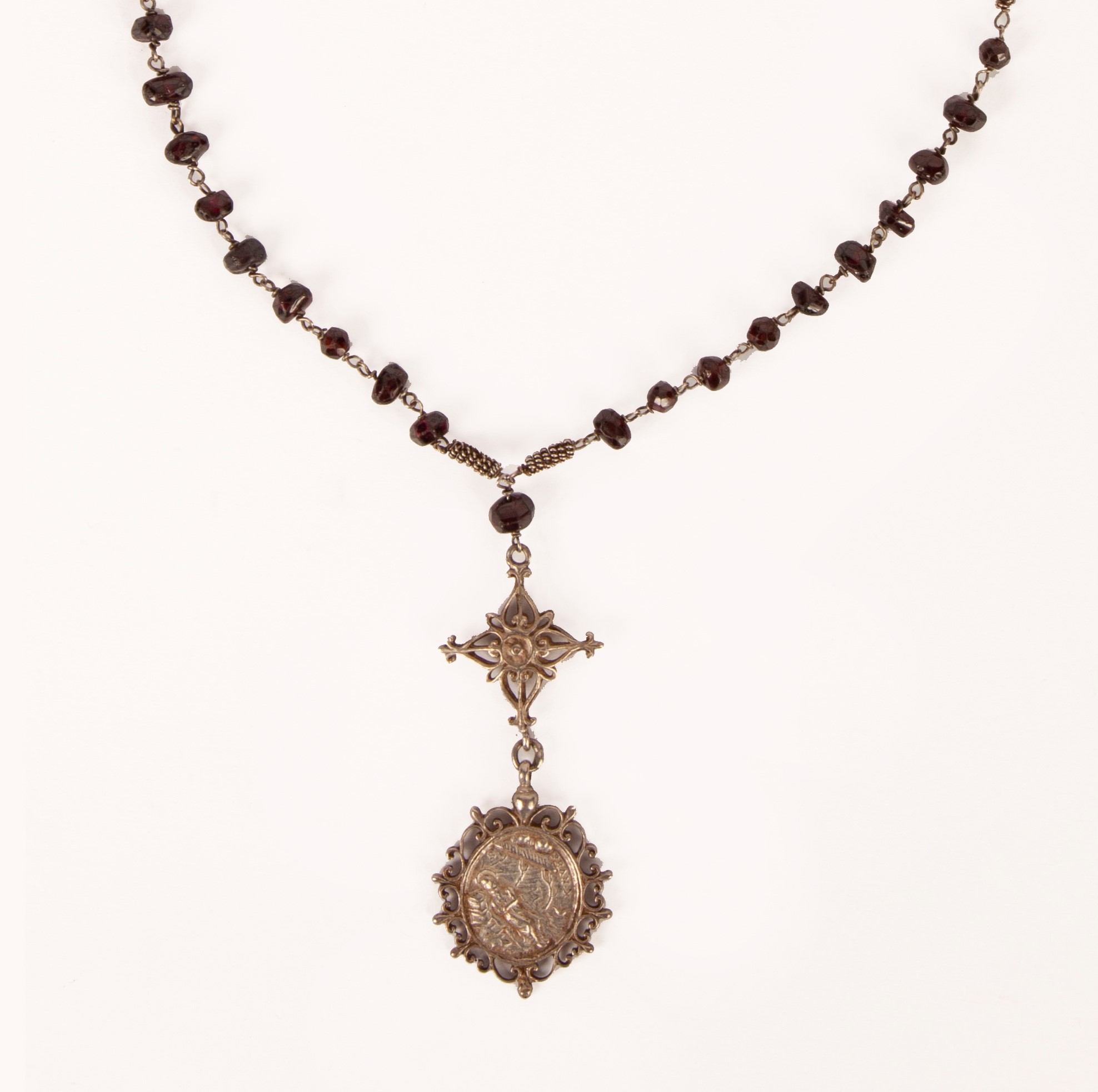 Rosario antico in argento e granati
