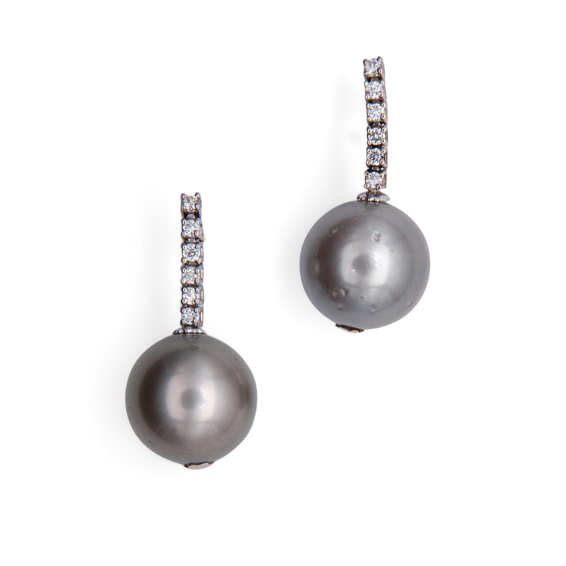 Lotto 85 | Coppia orecchini perle grigie e brillanti