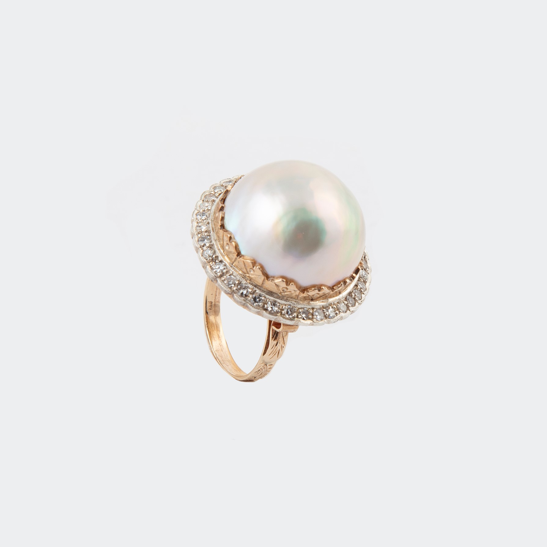 Anello in oro con perla mabè e dimanti