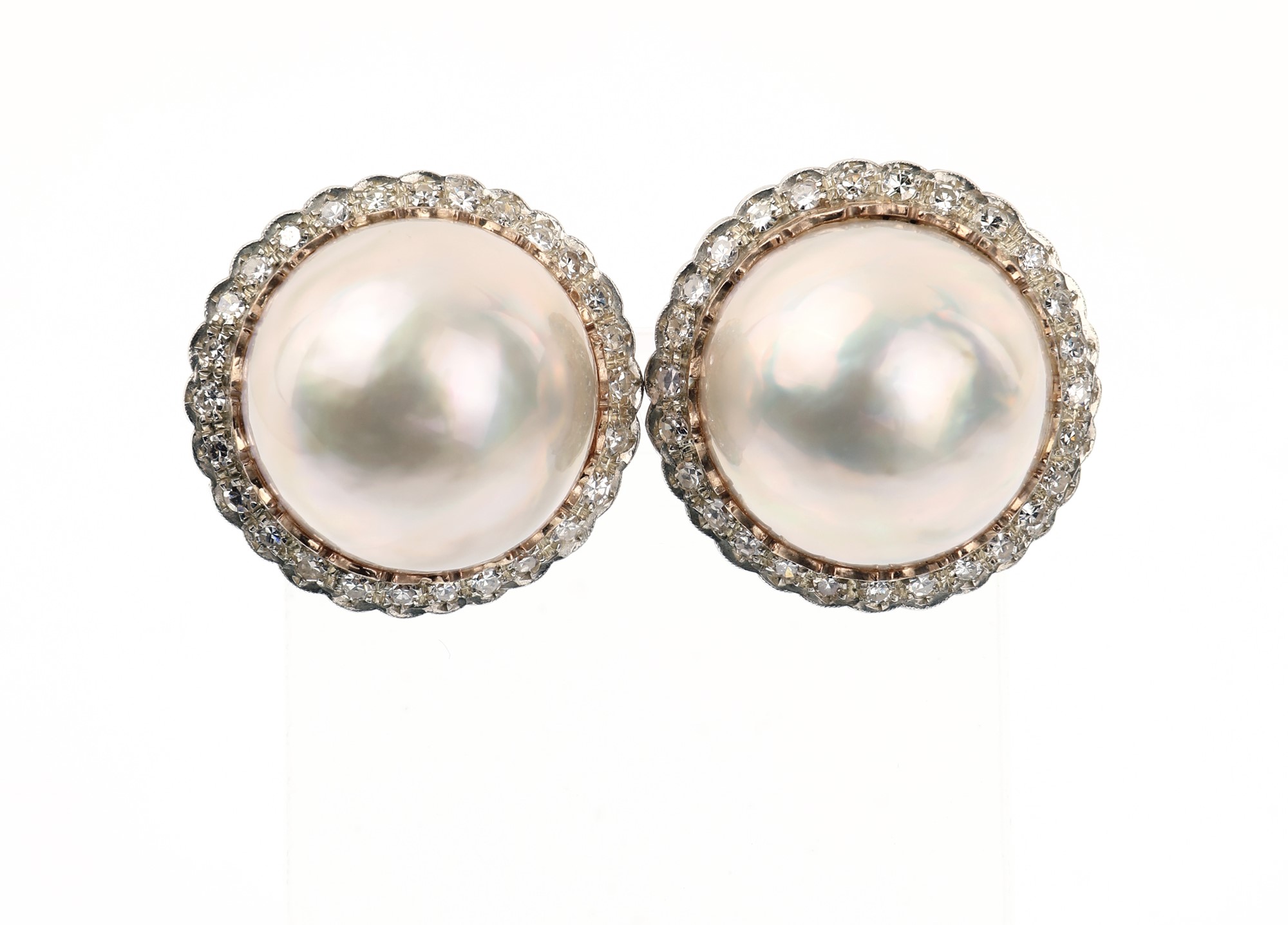 Orecchini con perla mabè e diamanti mm 7 diametro