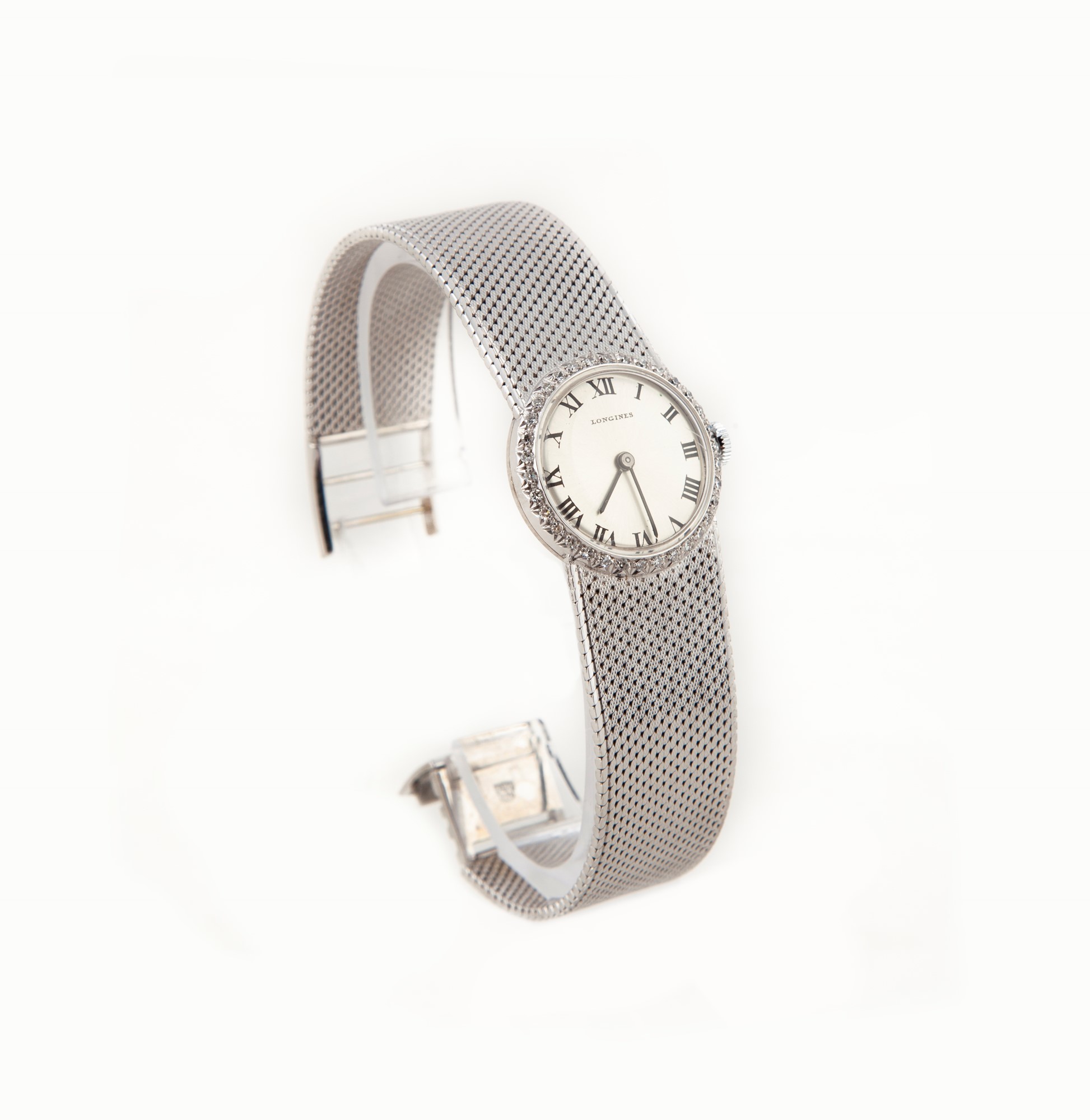 Oro bianco 750/000; lunghezza cm 16,5, cassa diametro mm 22. Peso complessivo gr. 52,30. Non funzionante, da revisionare.