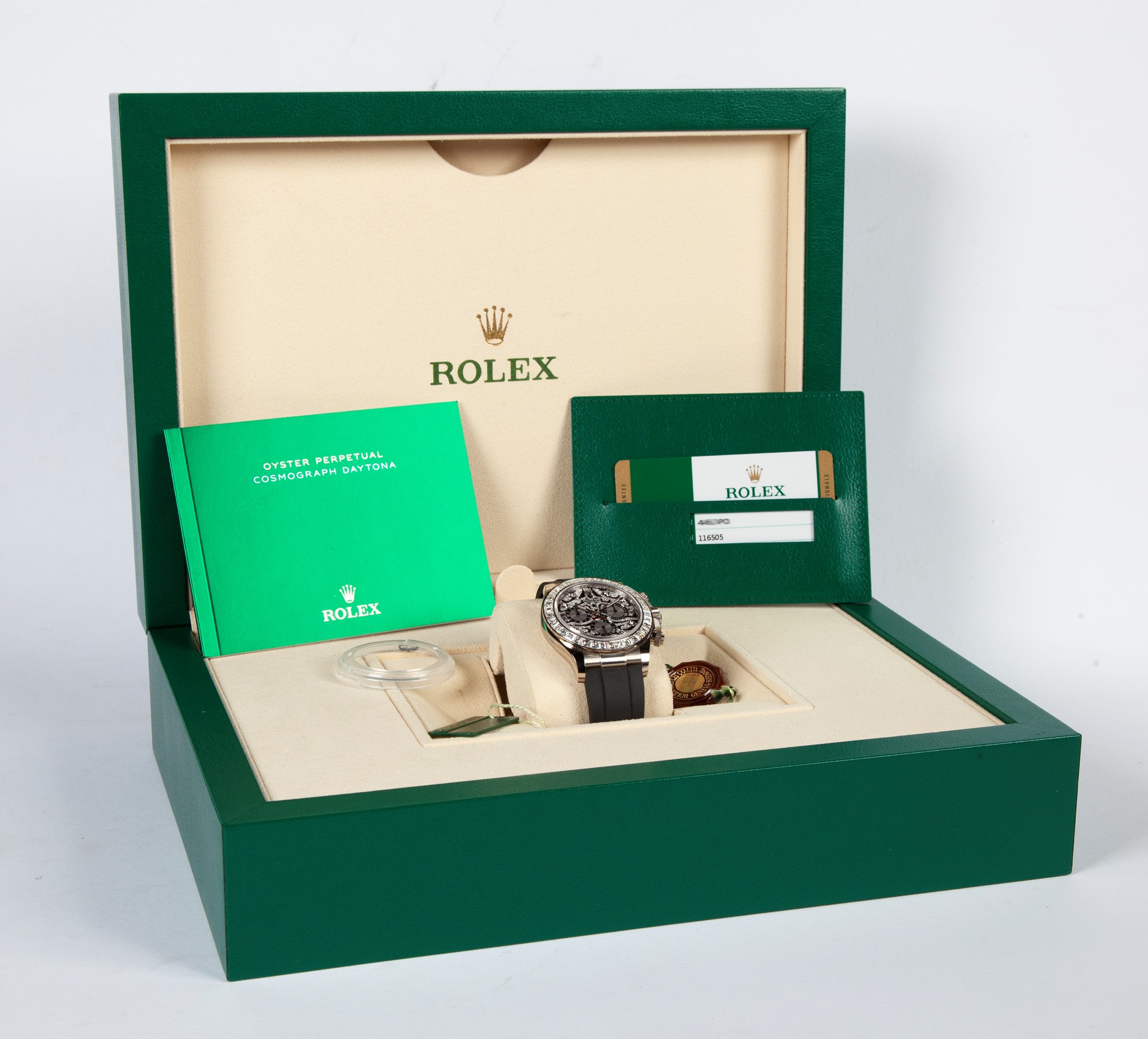 Ref. 116589TBR. Cassa in oro bianco 750/000 mm 40, bracciale in caucciù. Movimento automatico, calibro 4130. Compreso di scatola e garanzia.