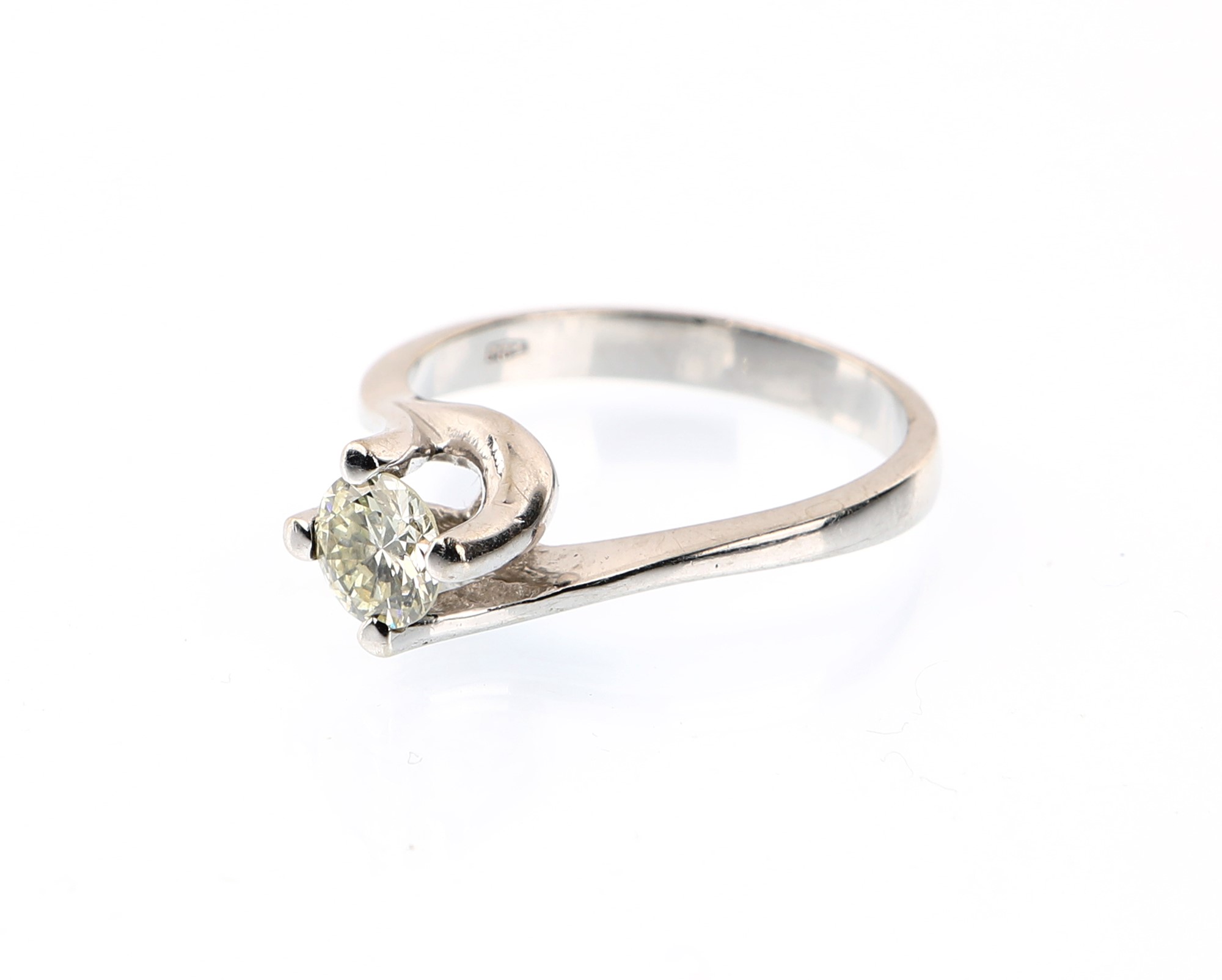 Oro bianco 750/000, diamante naturale taglio rotondo brillante ct. 0,65 ca. prob J/K-VS2. Peso complessivo gr. 3,90.