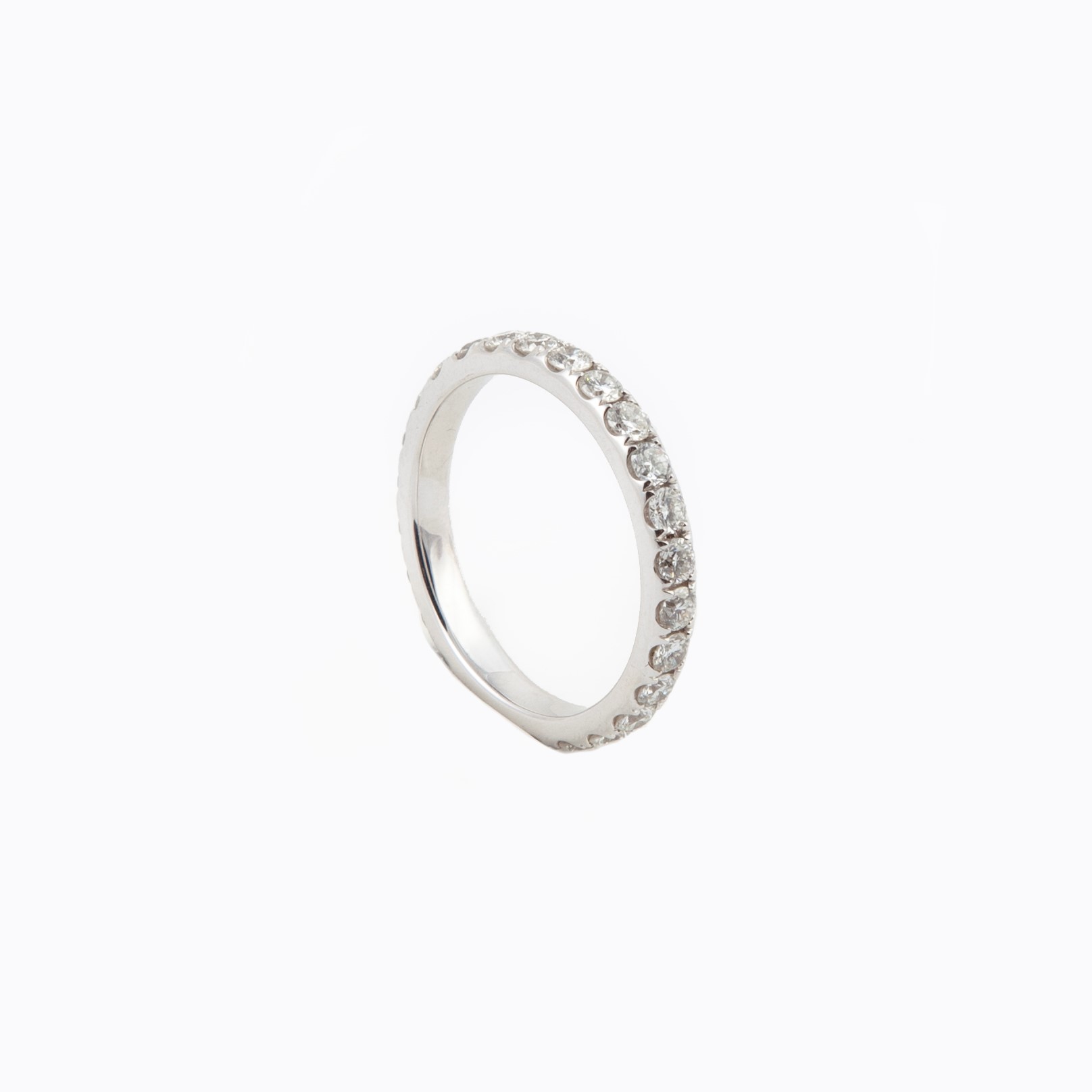 Oro bianco 750/000, diamanti in taglio rotondo brillante ct. 1,25 ca.; prob. G/H-VS/VVS. Peso complessivo gr. 2,80.