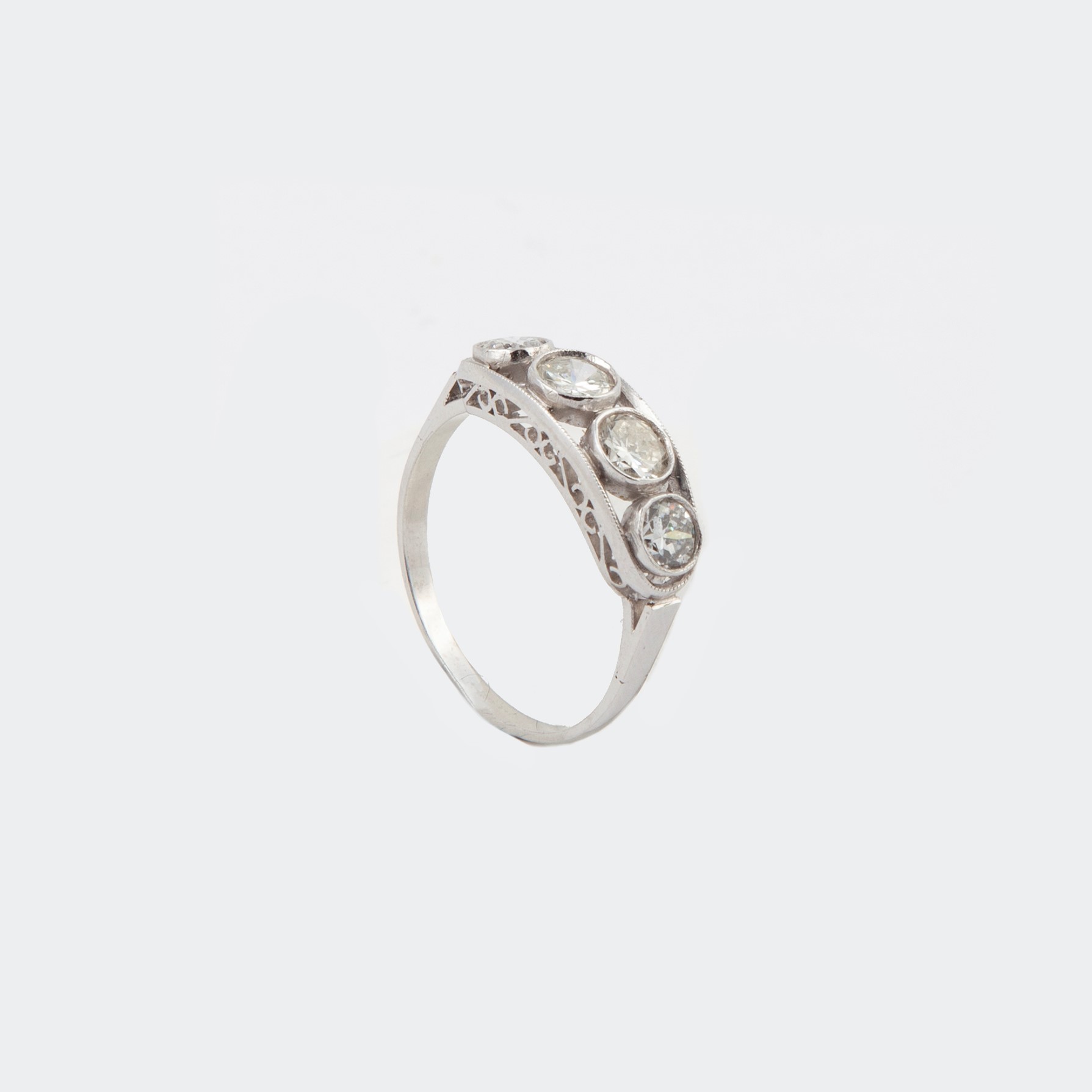 Anello a fascia in oro con quattro brillanti anni '30 Misura 18