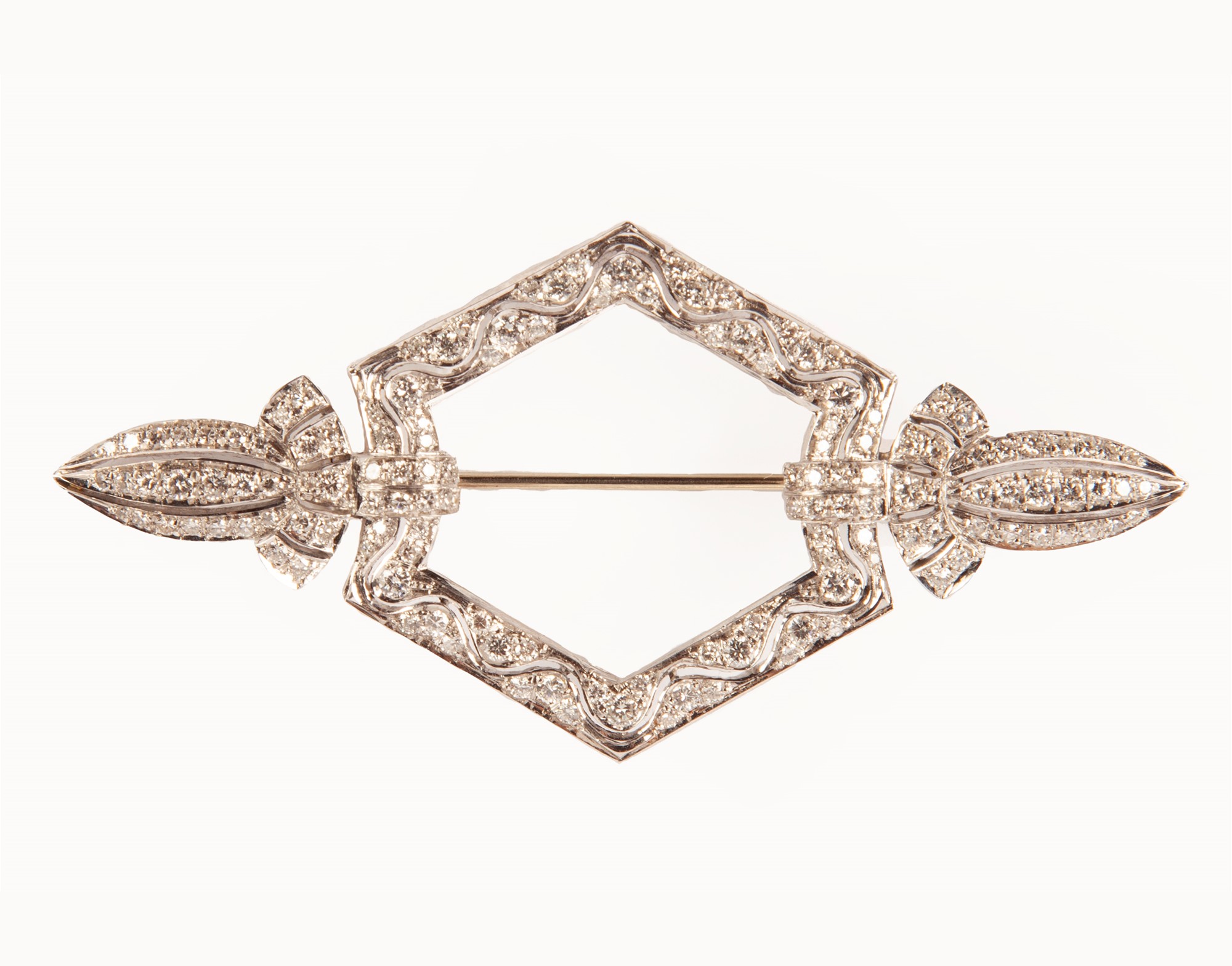 Linea geometrica. Oro bianco 750/000. Diamanti taglio brillante, ct. 2.00 circa. Peso complessivo gr. 11,50.