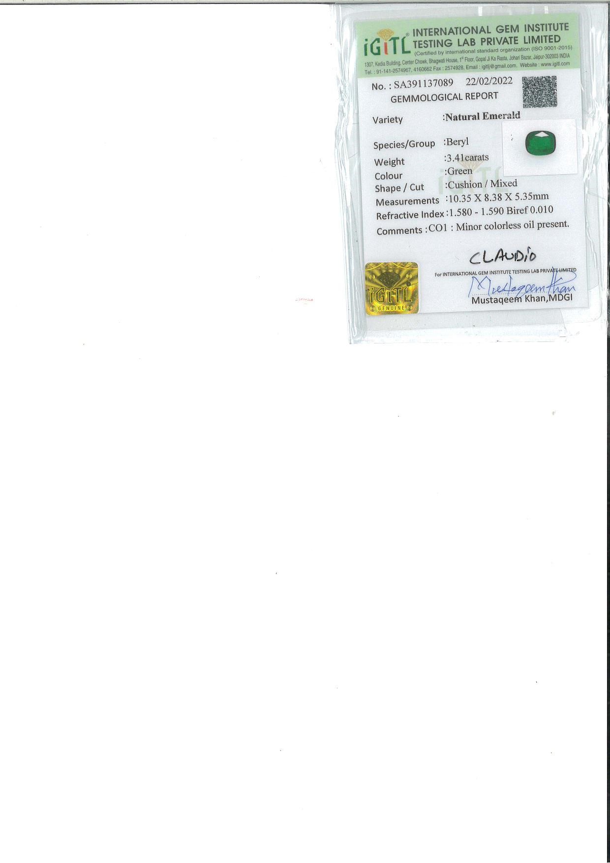 Certificato gemmologico N. SA391137089