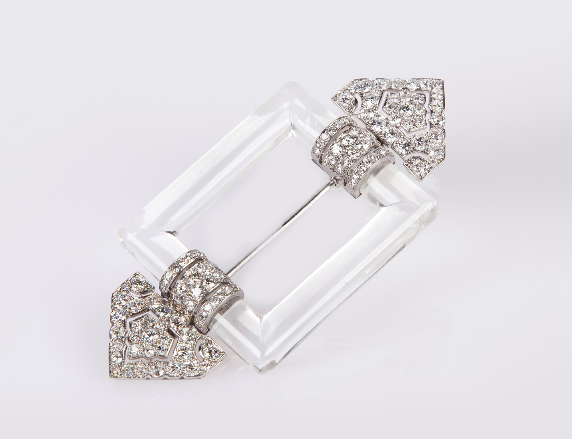 Lotto 245 | Spilla déco in oro, brillanti e cristallo di rocca cm 8,5x4