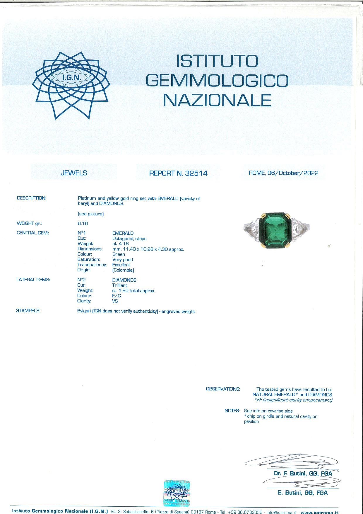 Bulgari - Anello in oro e platino con smeraldo colombiano