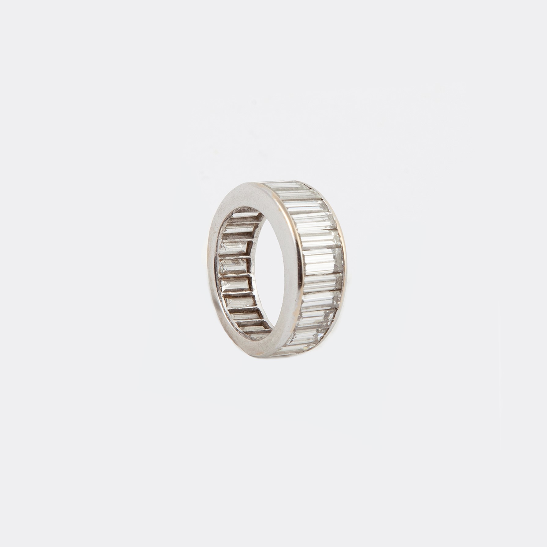Oro bianco 750/000. Diamanti taglio baguettes ct. 3,5 (?) G-VVS. Peso complessivo gr. 6.