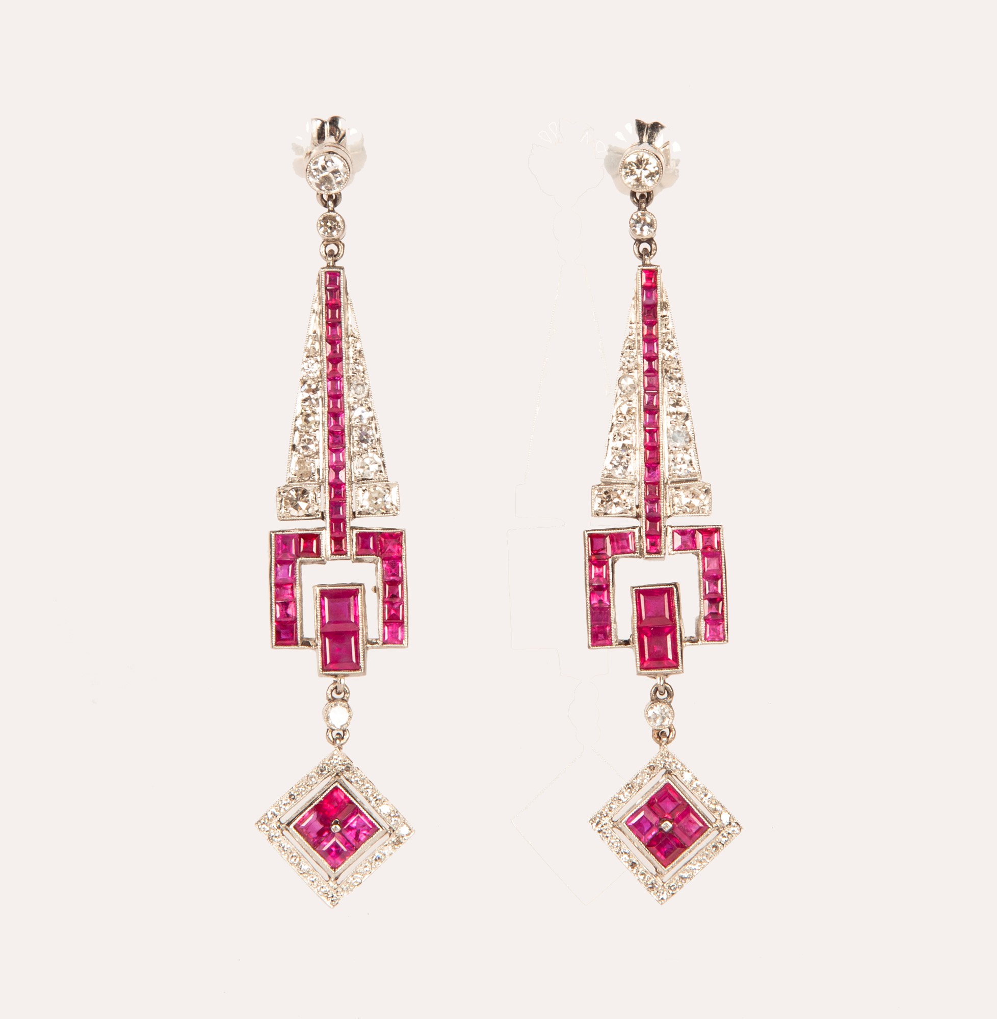 Oro bianco 750/000. Diamanti ct. 1 circa, rubini taglio carrè. Peso complessivo gr. 17,60.