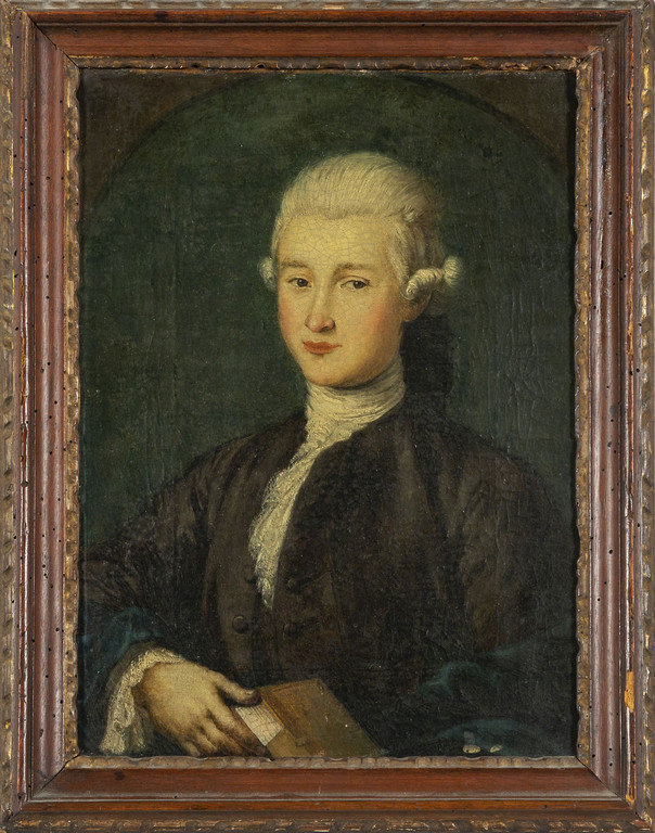 Scuola veneziana sec.XVIII 'Ritratto di giovane uomo' olio cornice coeva in legno ed oro