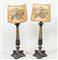 COPPIA DI LUMI DA TAVOLO IN METALLO DORATO E PATINATO fine del XIX/inizio del...