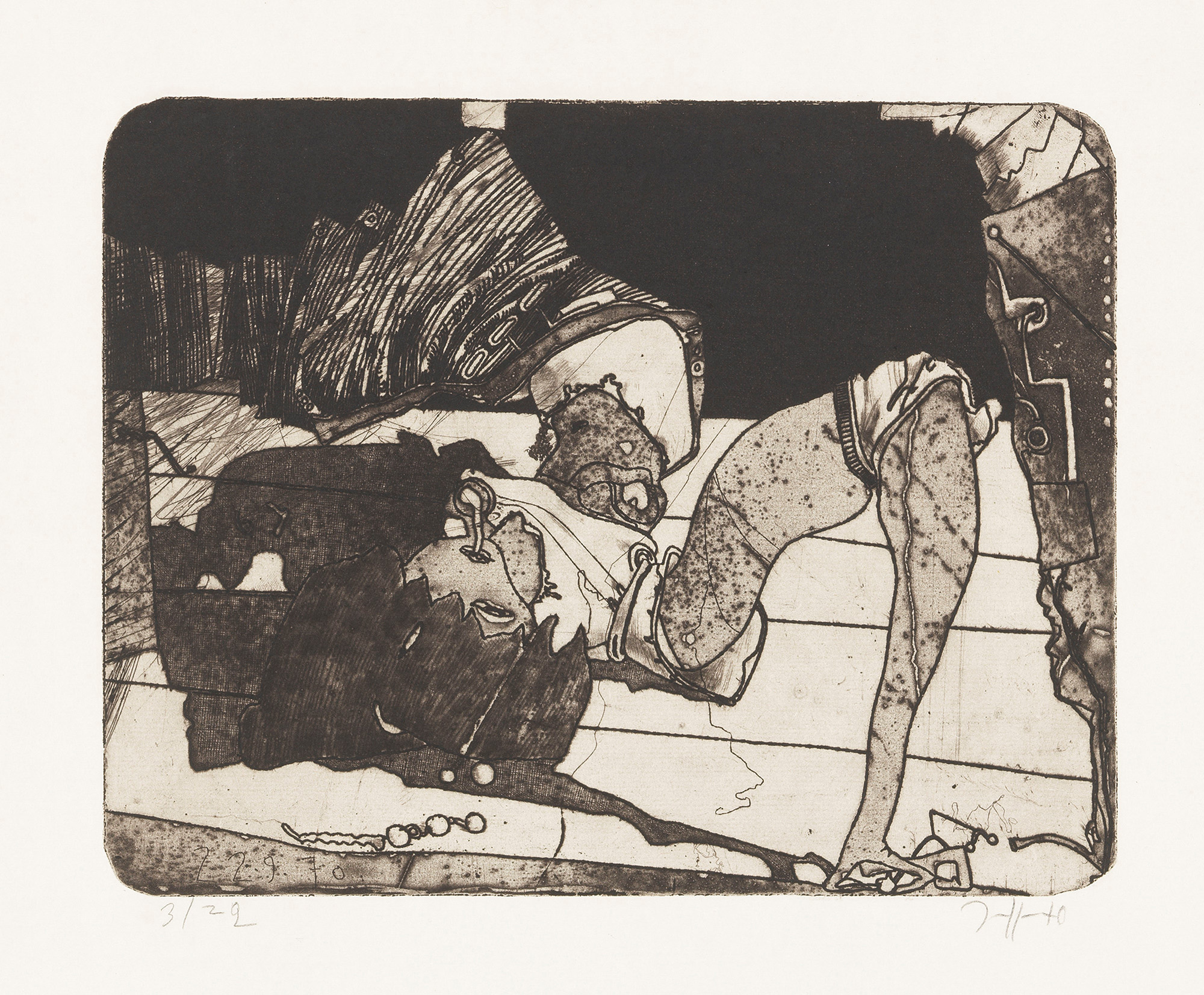 Data in lastra in basso a sinistra: 22.9.70, firma e data a matita sul margine in basso a destra: Janssen 70, tiratura in basso a sinistra: 3/22.