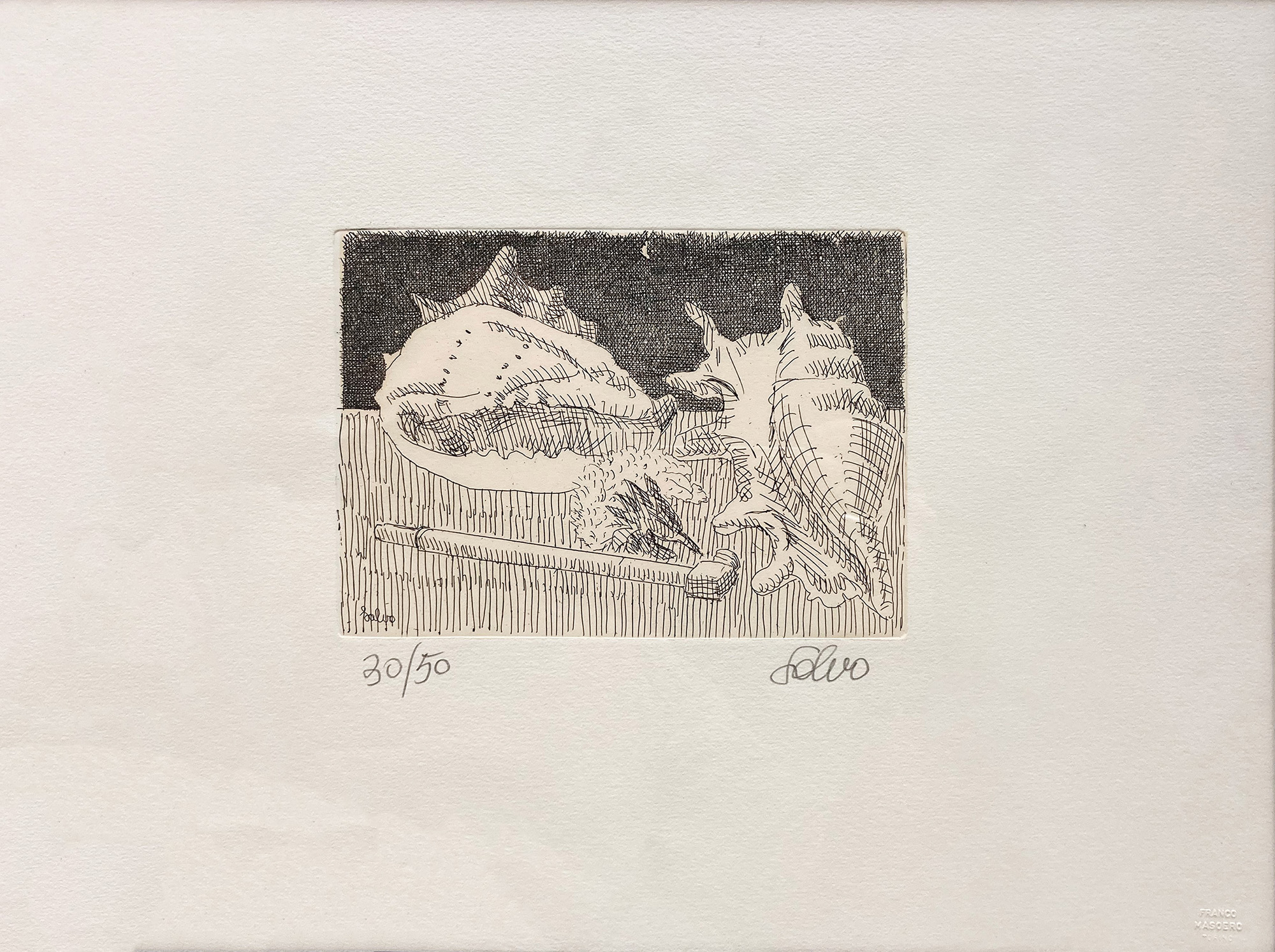 Firma in lastra in basso a sinistra: Salvo, firma a matita sul margine in basso a destra: Salvo, tiratura in basso a sinistra: 30/50.