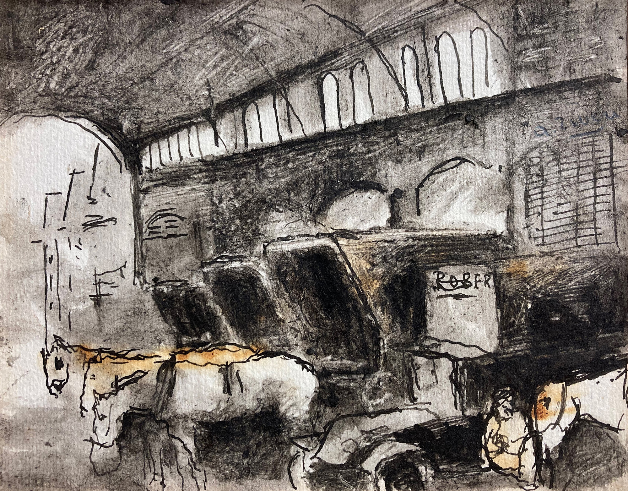 A) Les Halles, 1937, inchiostro acquerellato su carta, cm. 11,6x15,1. Firma in alto a destra: A. Ziveri; titolo, luogo, firma e data al verso: Les Halles Paris / A. Zivieri / 1937;