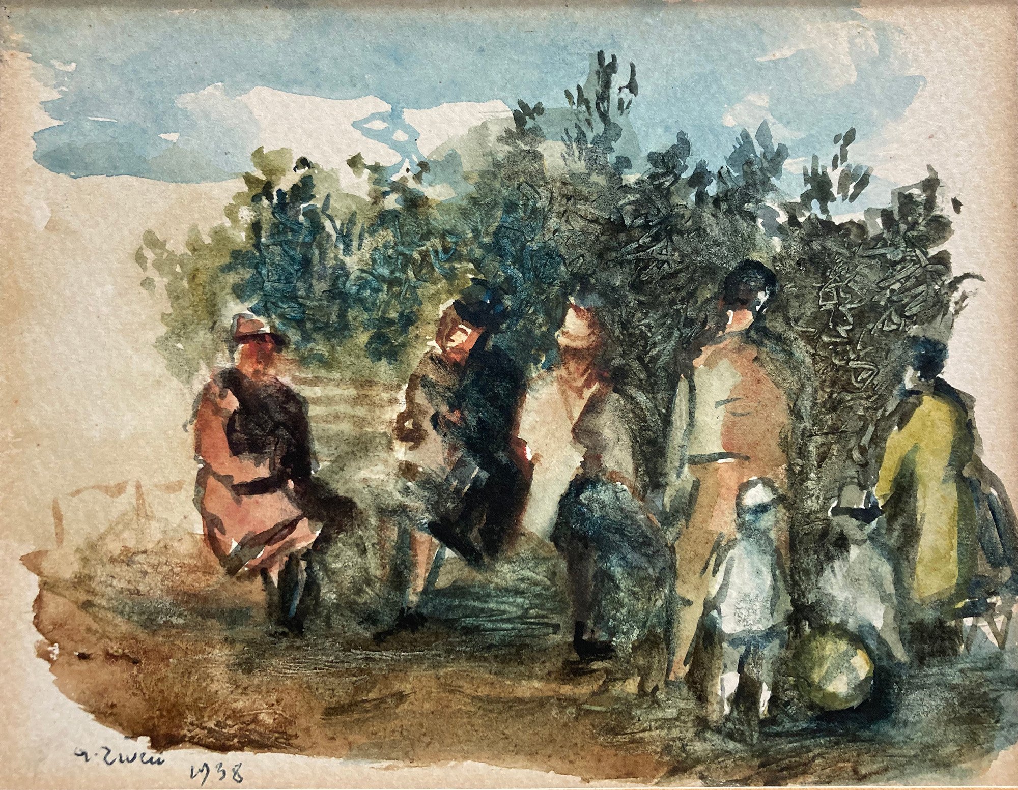 C) Le Pollarole, 1938, tecnica mista su carta, cm. 12,7x18,3. Firma e data in basso a destra: A. Ziveri / 1938.