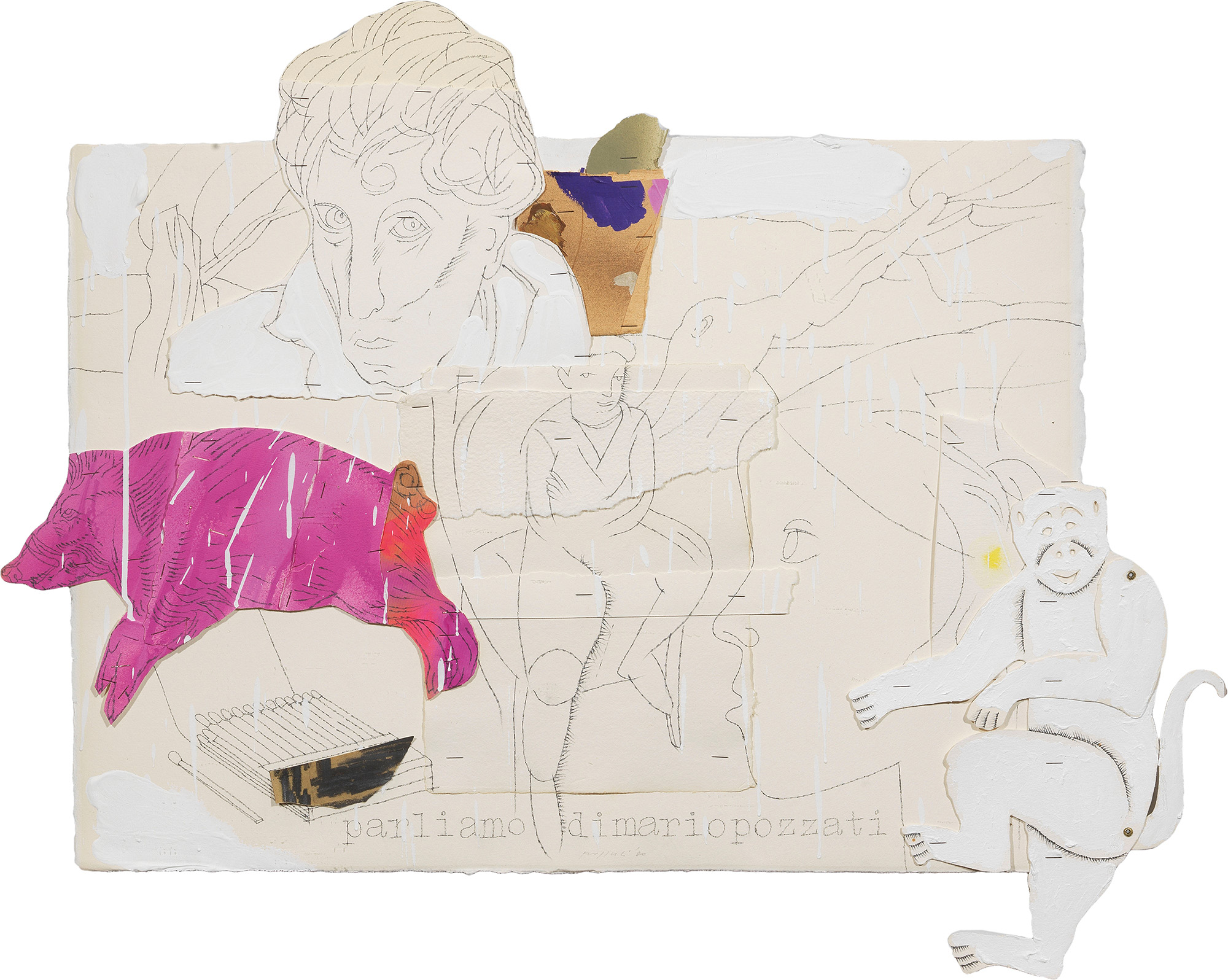 Titolo, firma e data in basso al centro: Parliamo di Mario Pozzati / Pozzati '80.