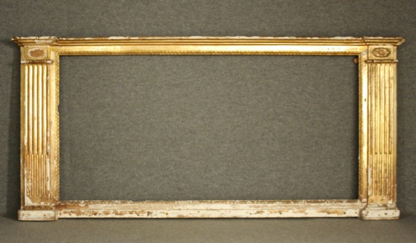 Cornice in legno dorato a mecca. XVIII secolo. Difetti. Mis. interne cm 81x165, mis. esterne cm 97x210.