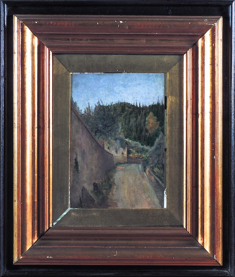 SCORCIO DI STRADA TOSCANA olio su tavoletta, firmato, in cornice cm 26x18