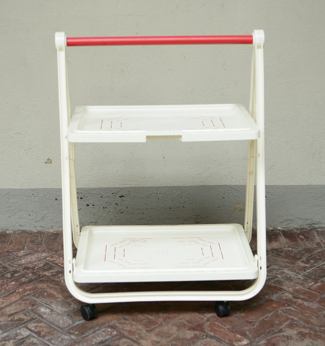 CARDIN PIERRE. Carrellino pieghevole. Folding tea trolley. Plastica. Cm 56x80x39. 1950.